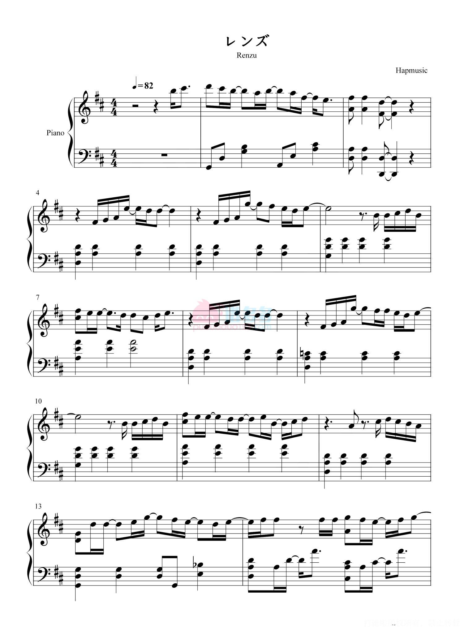 レンズ钢琴谱