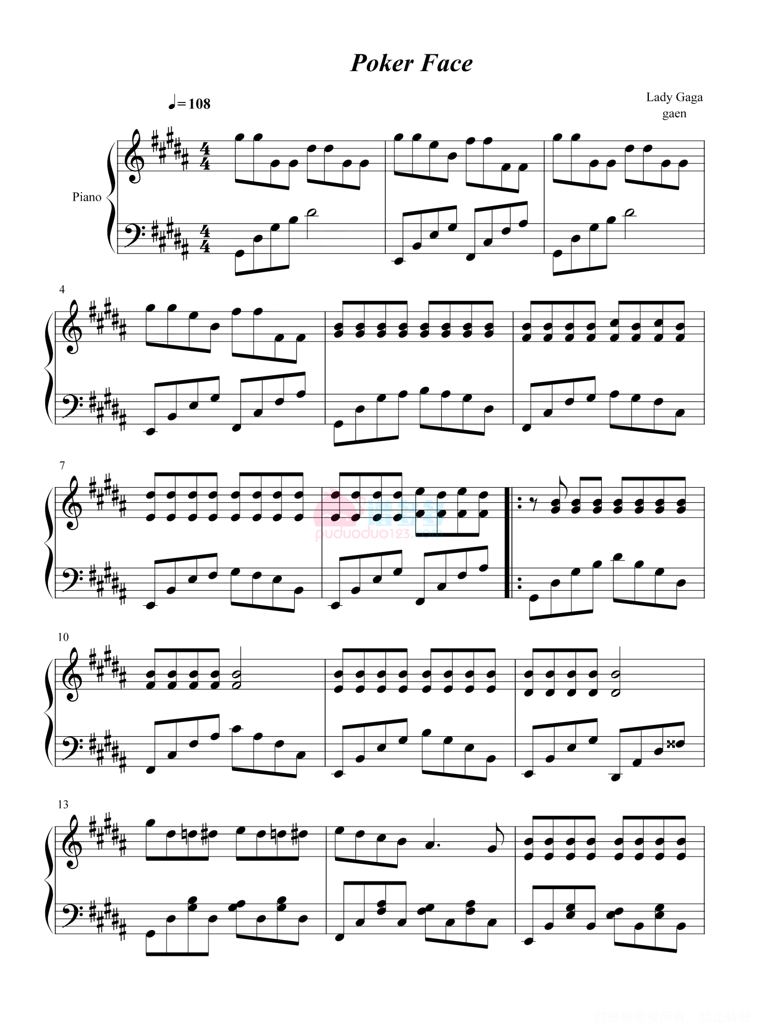 • Poker Face钢琴谱 - Lady Gaga第1张