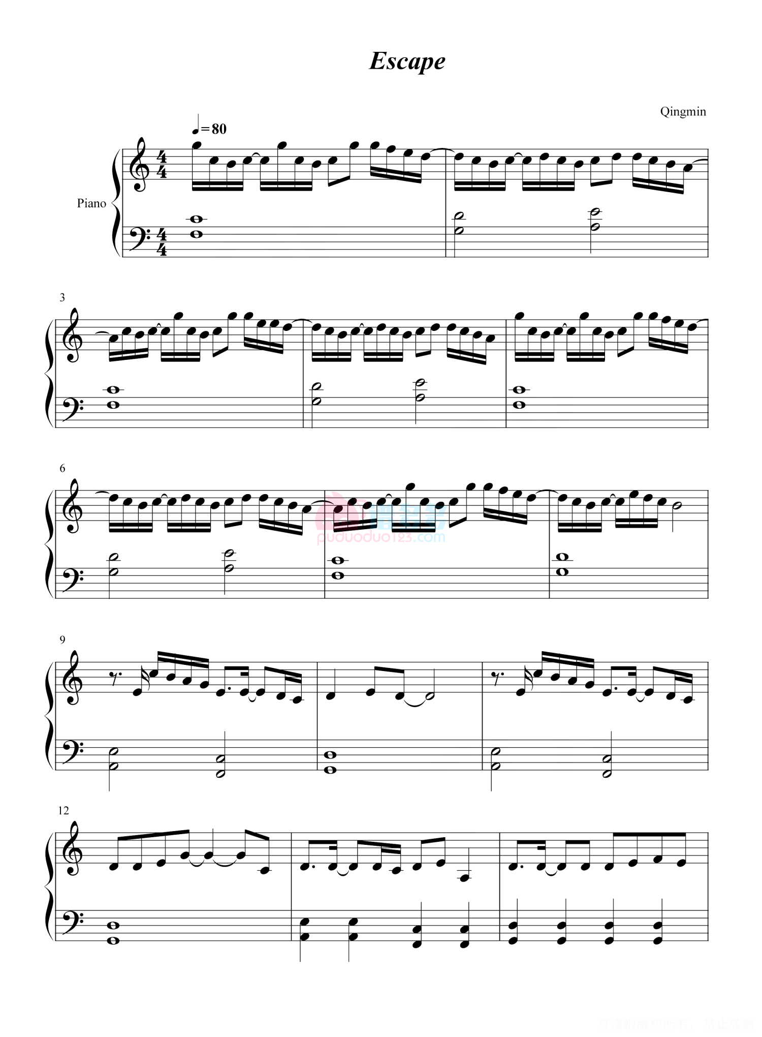 曲谱介绍: 《Escape》是日剧《新娘未满Escape》(花嫁未満エスケープ)的片尾曲,由日本流行乐男子组合FANTASTICS from EXILE TRIBE演唱。 歌曲从剧中女主角前男友的视角出发,描写他放不下女主角的心情,FANTASTICS的歌声在悲伤苦闷中表现出坚定不移的力道,搭配上钢琴与弦乐伴奏的难忘旋律,让这首抒情曲充满戏剧性。 《新娘未满Escape》是东京电视台制作的漫改电视剧,由冈崎纱绘主演,于2022年4月7日开播。该剧根据小川丸二原创漫画改编,讲述30岁“结婚适龄期”女主人公的三角恋故事。