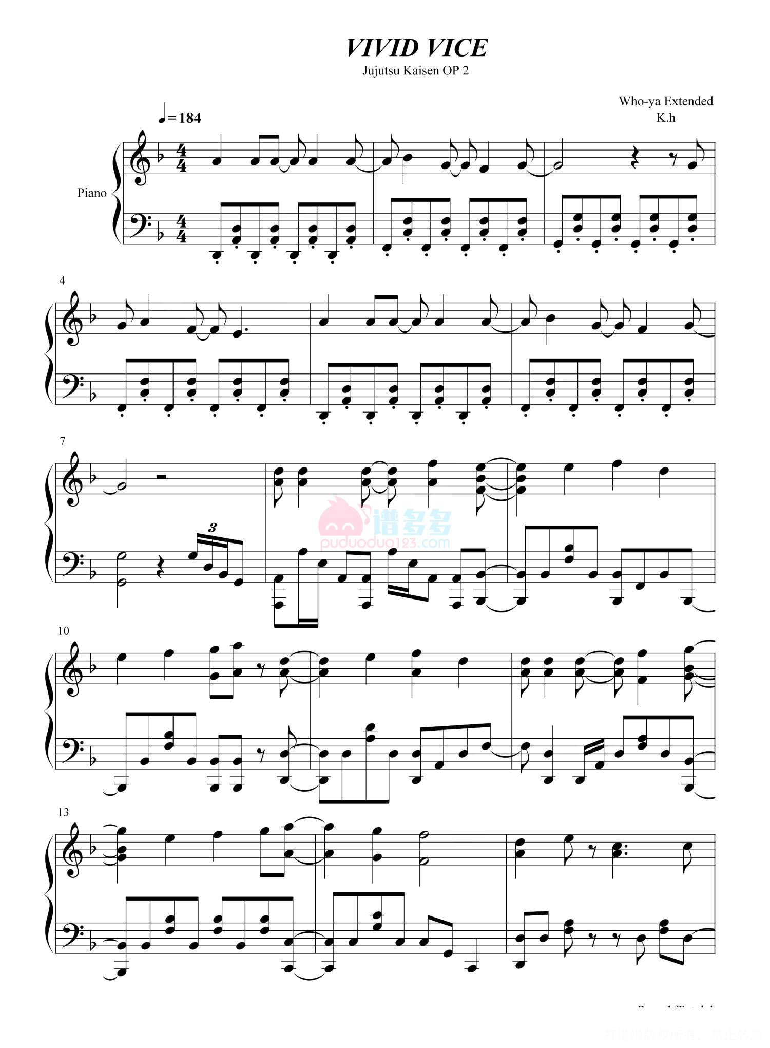 • VIVID VICE钢琴谱 - Who-ya Extended第1张