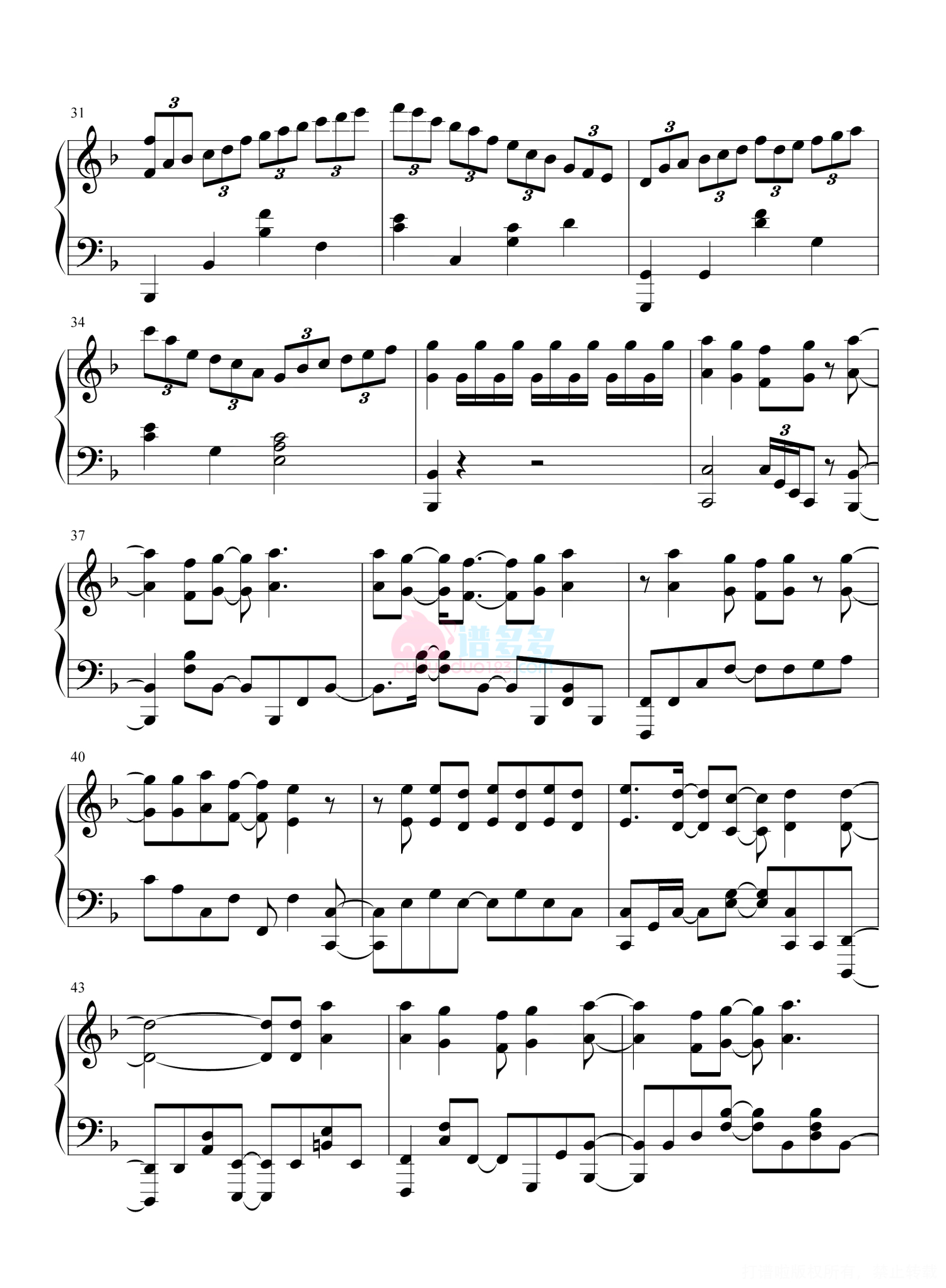 凡是琴谱网站内的版权保护水印,打印时,都会无水印。