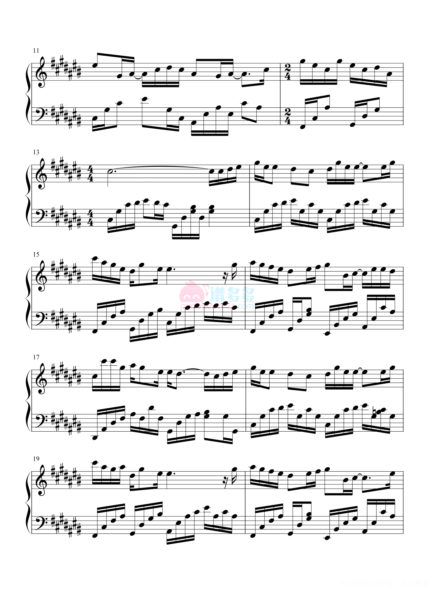 凡是琴谱网站内的版权保护水印,打印时,都会无水印。
