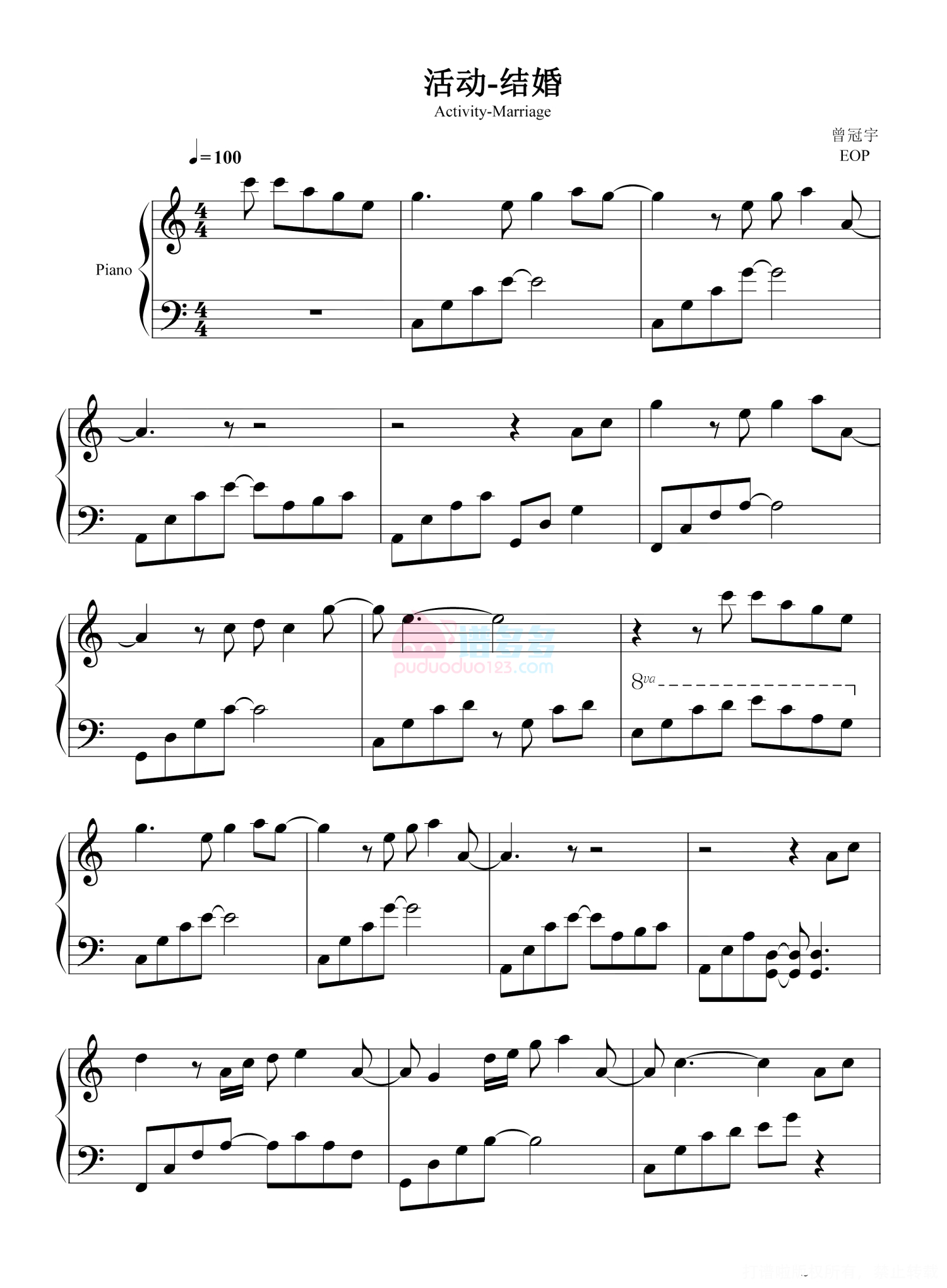 活动-结婚钢琴谱 - 曾冠宇