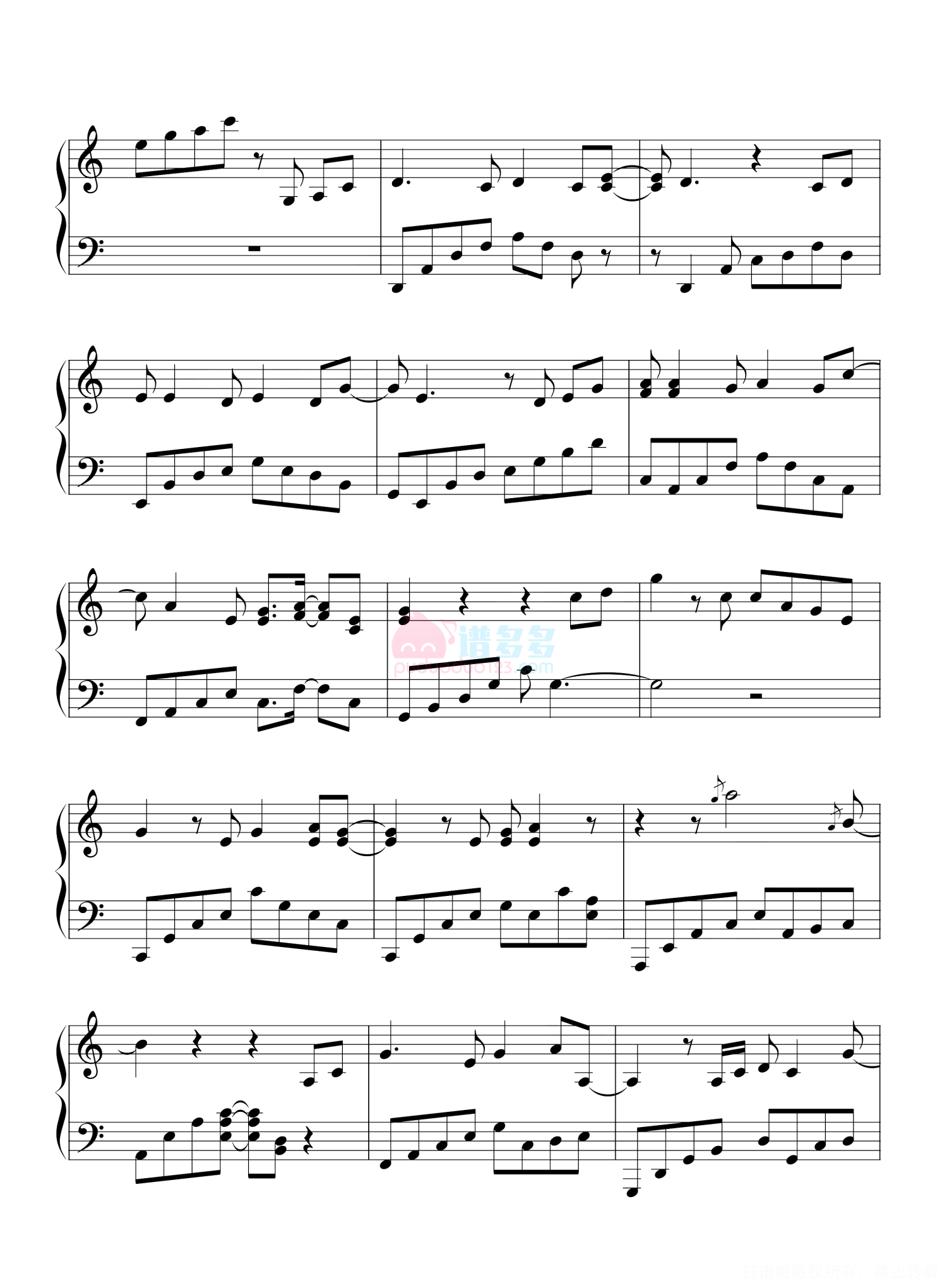 凡是琴谱网站内的版权保护水印,打印时,都会无水印。