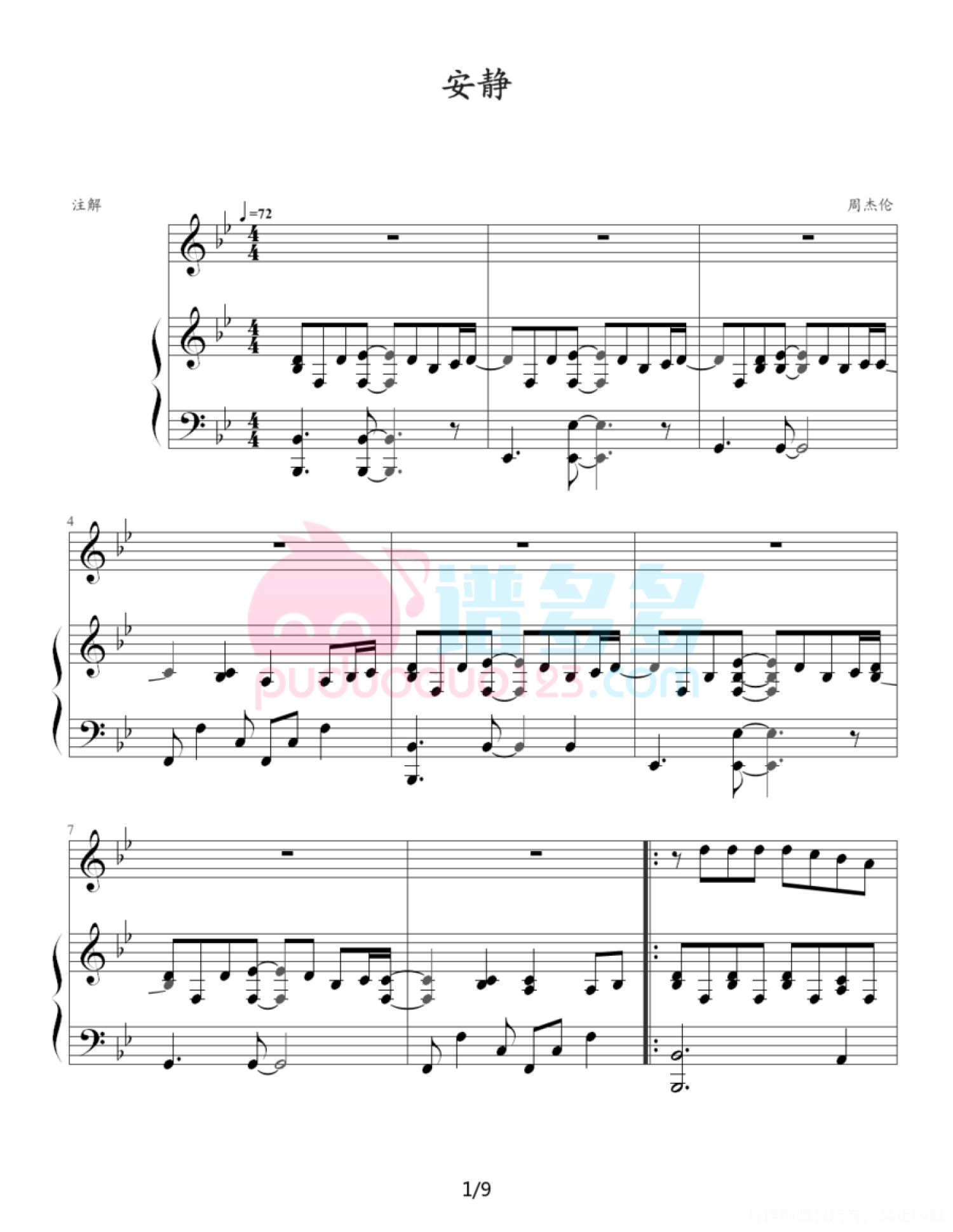 安静钢琴谱 - 周杰伦