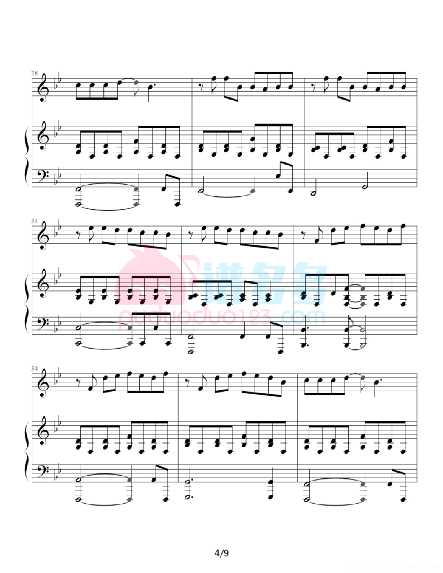 凡是琴谱网站内的版权保护水印,打印时,都会无水印。
