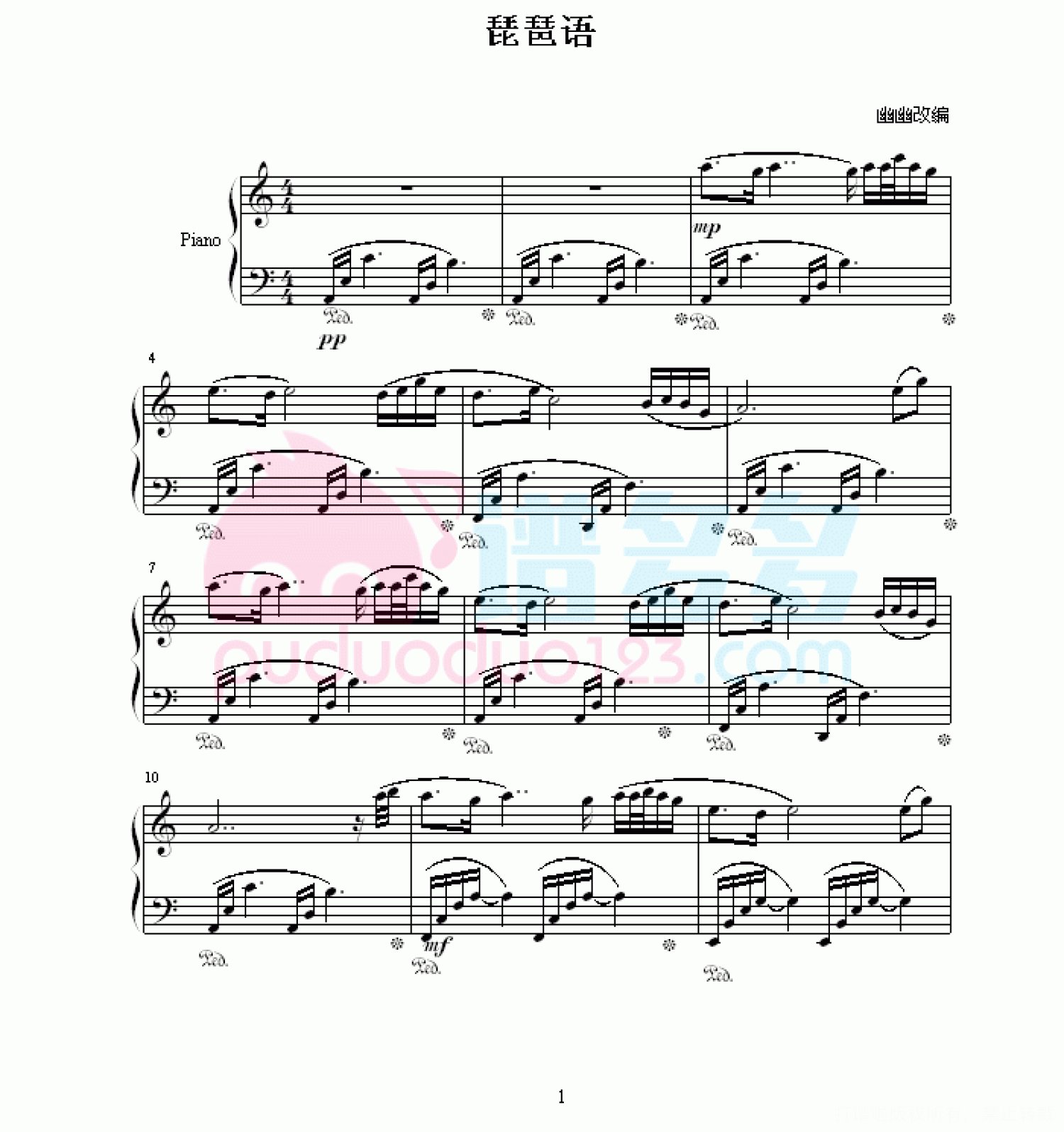 当前位置:琴谱网>钢琴谱>琵琶语