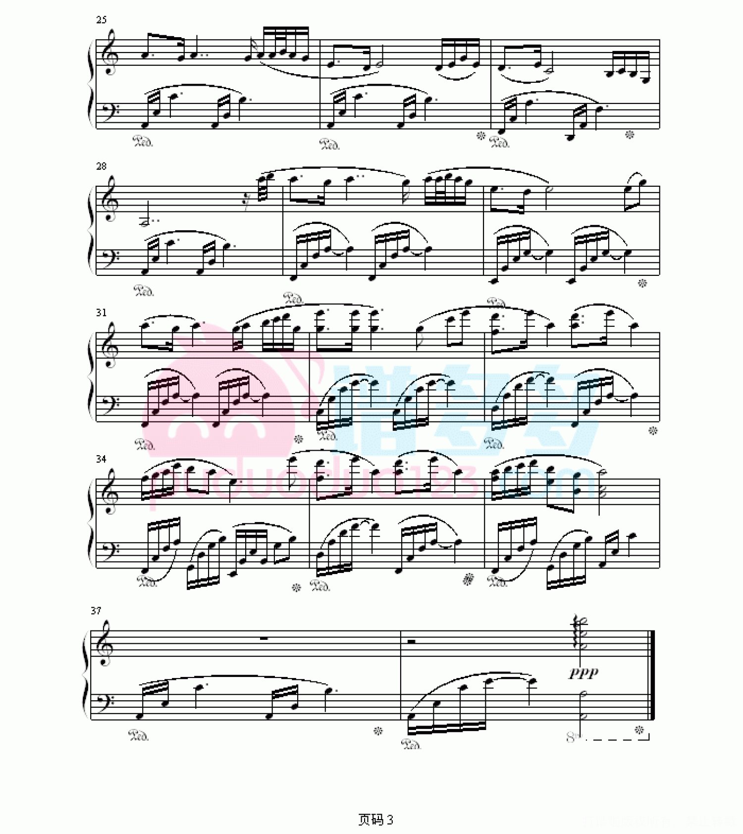 凡是琴谱网站内的版权保护水印,打印时,都会无水印。