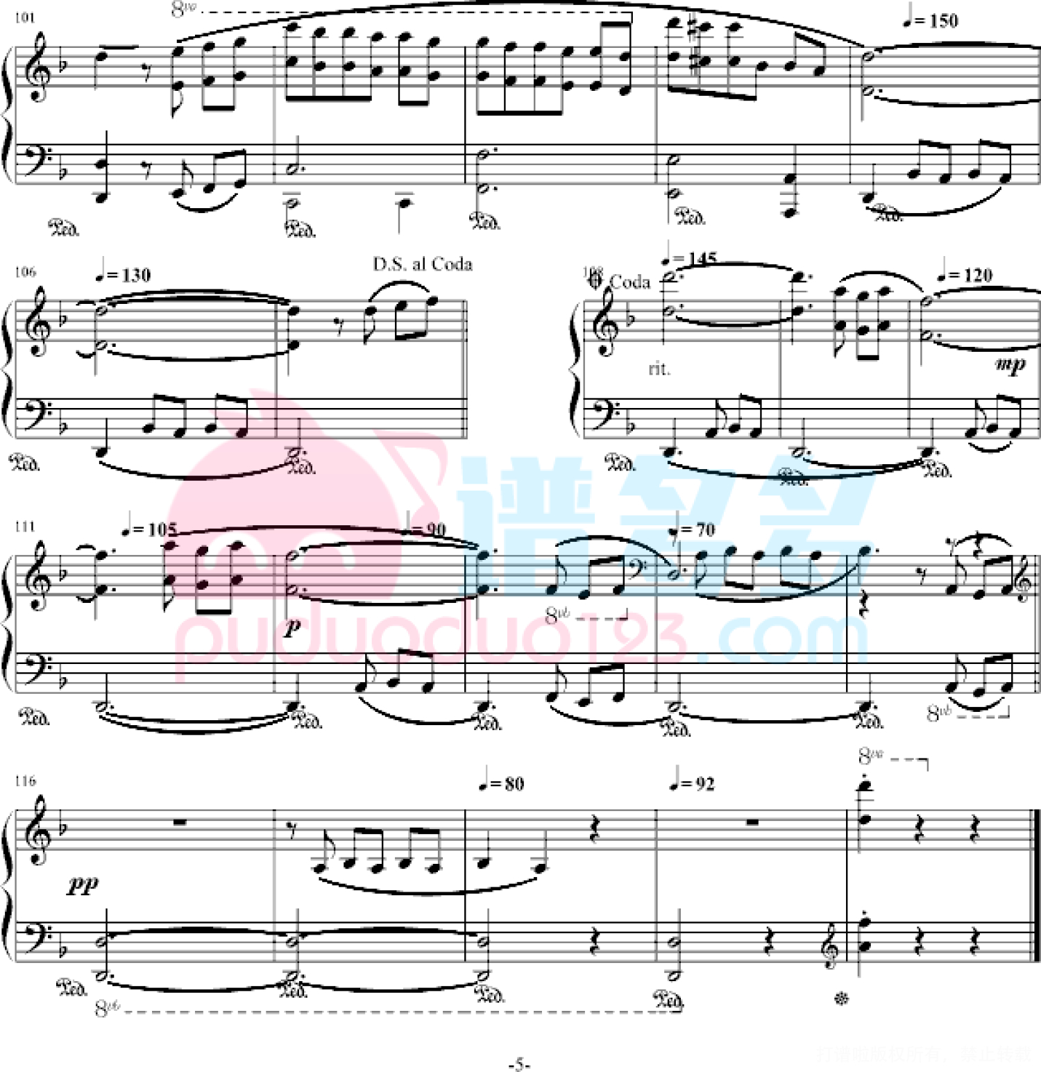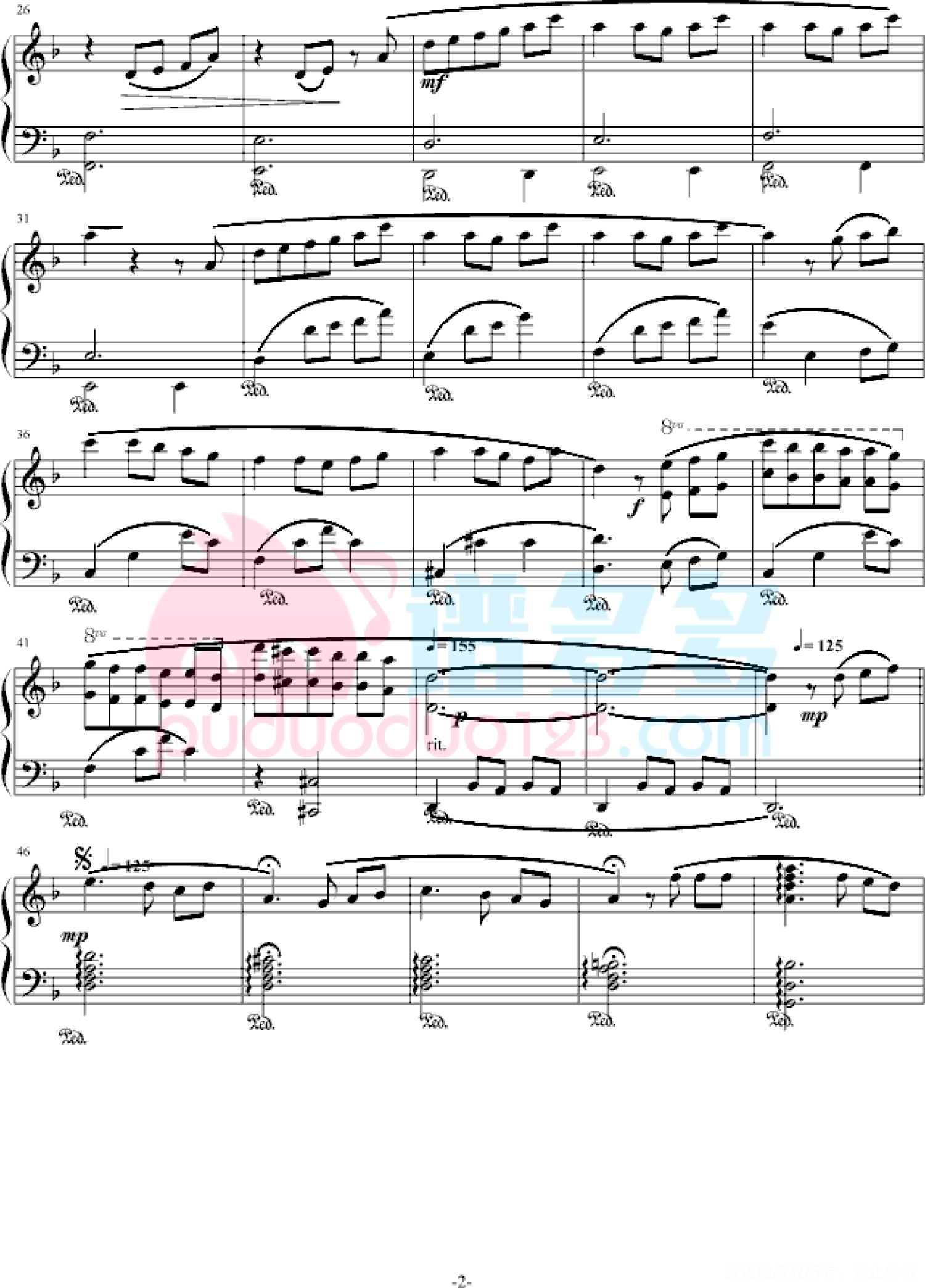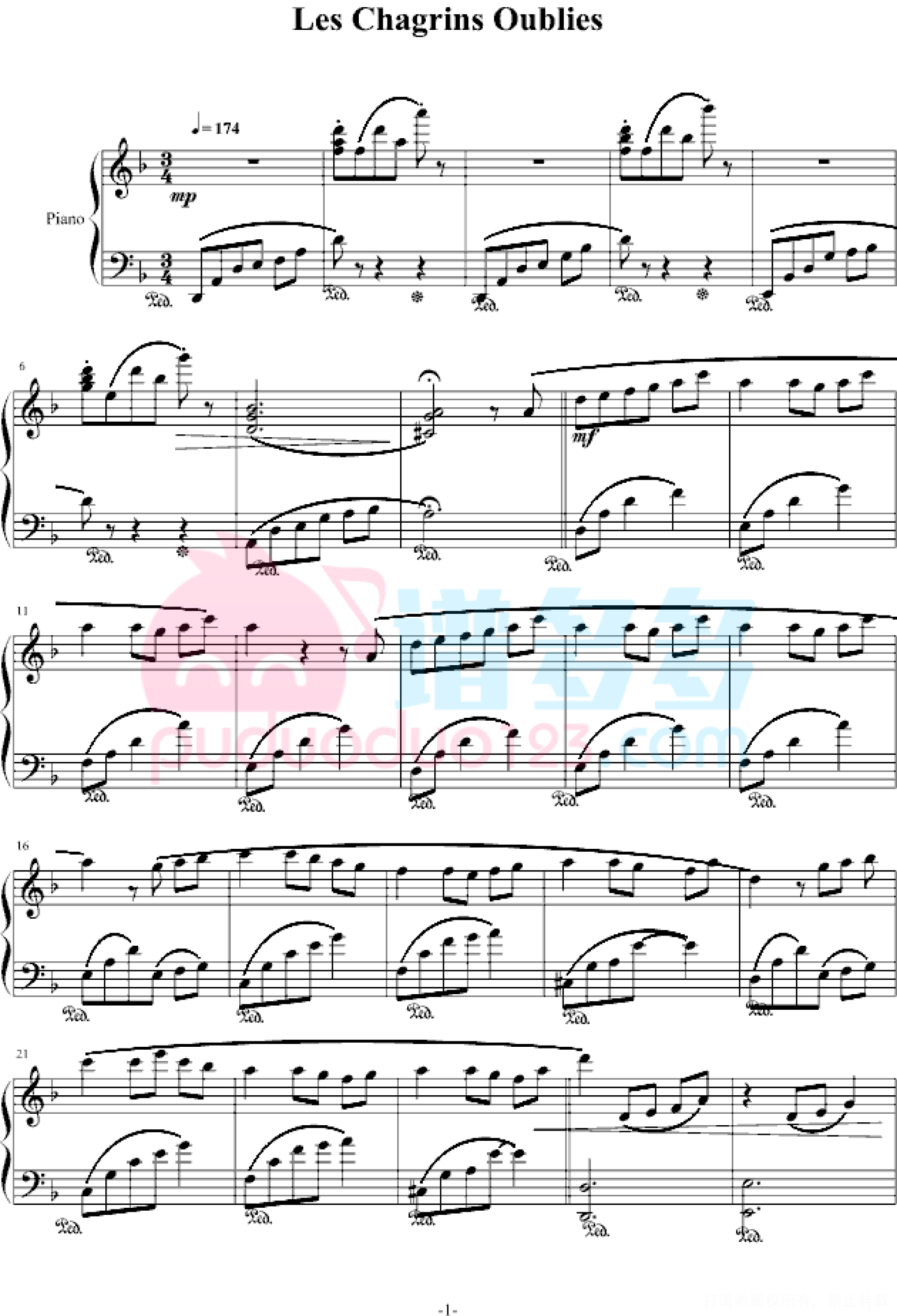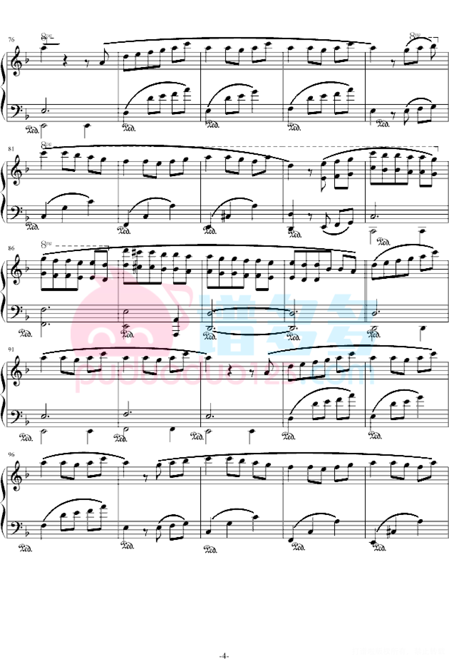 凡是琴谱网站内的版权保护水印,打印时,都会无水印。