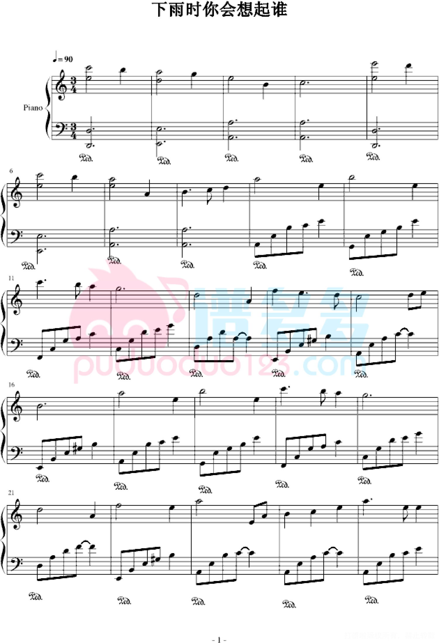 当前位置:琴谱网>钢琴谱>下雨时你会想起谁