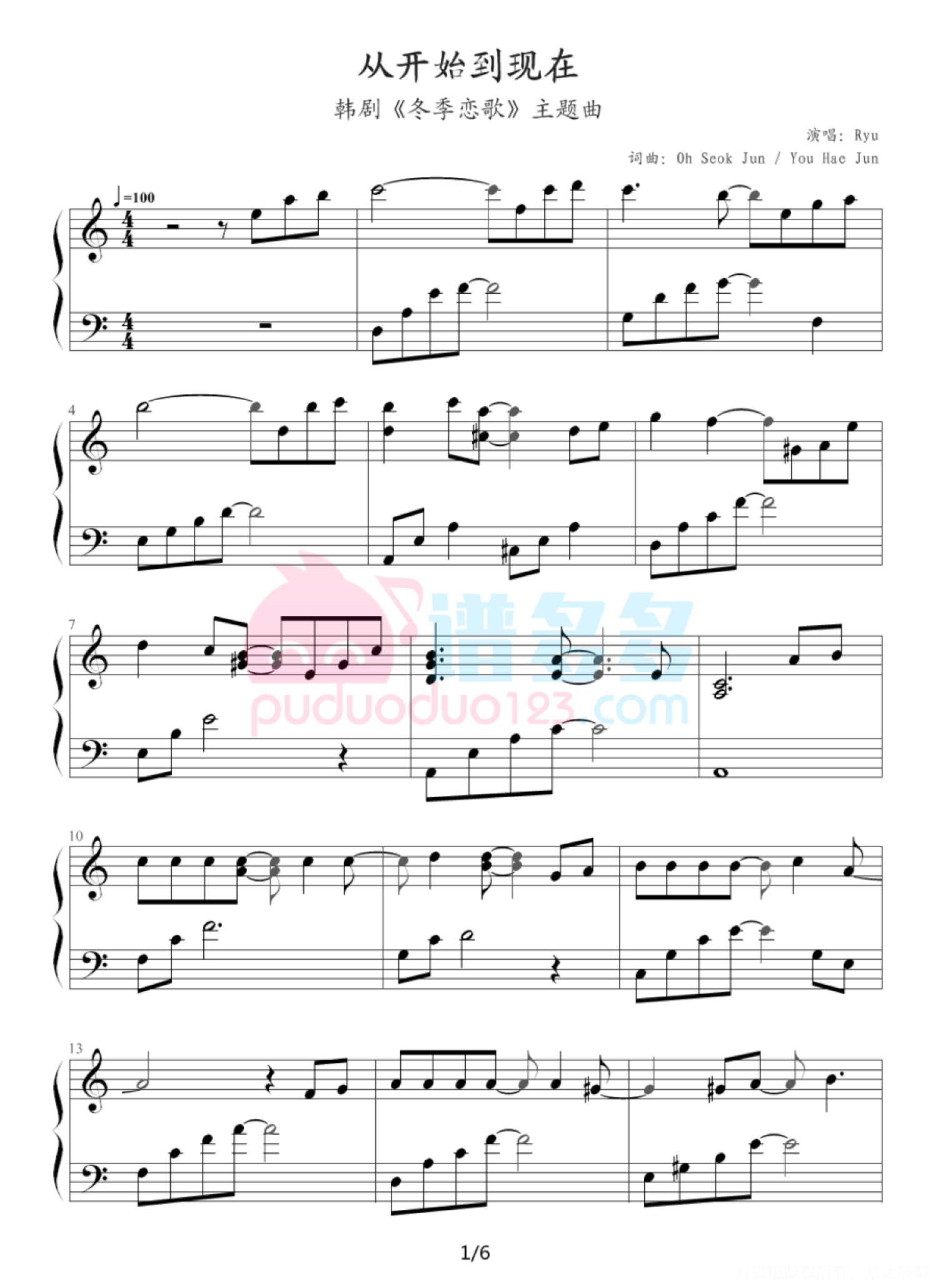 曲谱介绍: 《从开始到现在》由李焯雄作词,吴熙俊作曲,屠颖编曲,张信哲演唱的一首歌曲。收录在张信哲发行的同名新歌+专辑《从开始到现在》中,同时也是韩剧《冬季恋歌》的中文版主题曲。