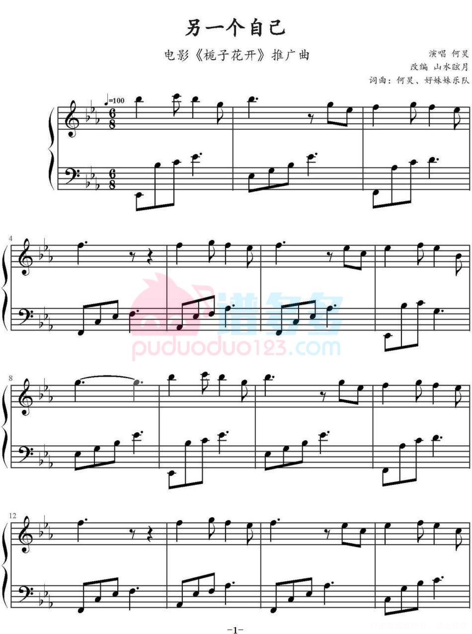 曲谱介绍: 电影《栀子花开》发布暖心推广曲《另一个自己》,该歌曲由好妹妹乐队、吴梦知、何炅联手填词,好妹妹乐队作曲,何炅演唱。