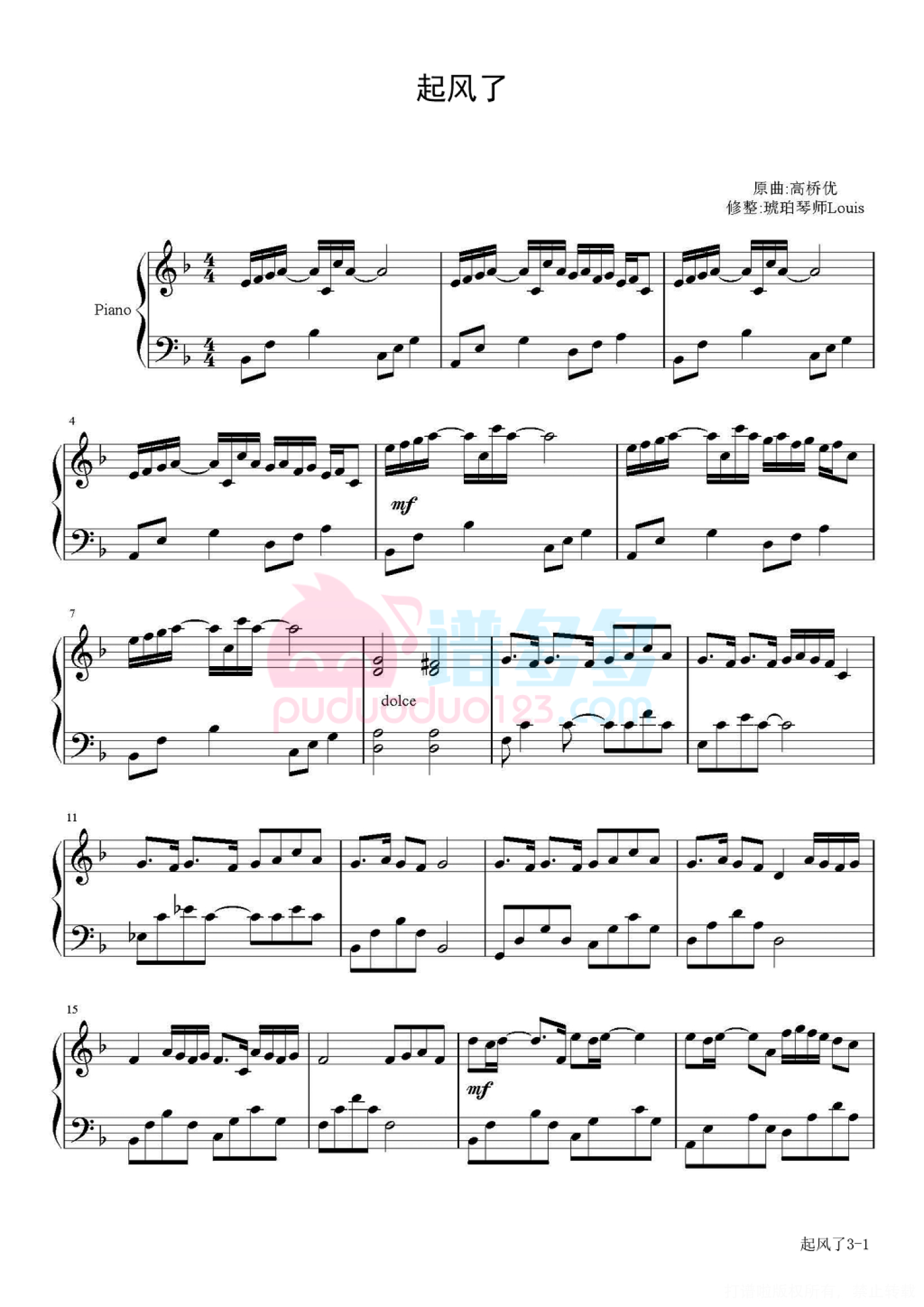 琴谱网尊重作者版权,不会私自去掉作者提供的水印,此类图谱如需去掉水印,请自行去除后,通过站内自助上传打印即可。