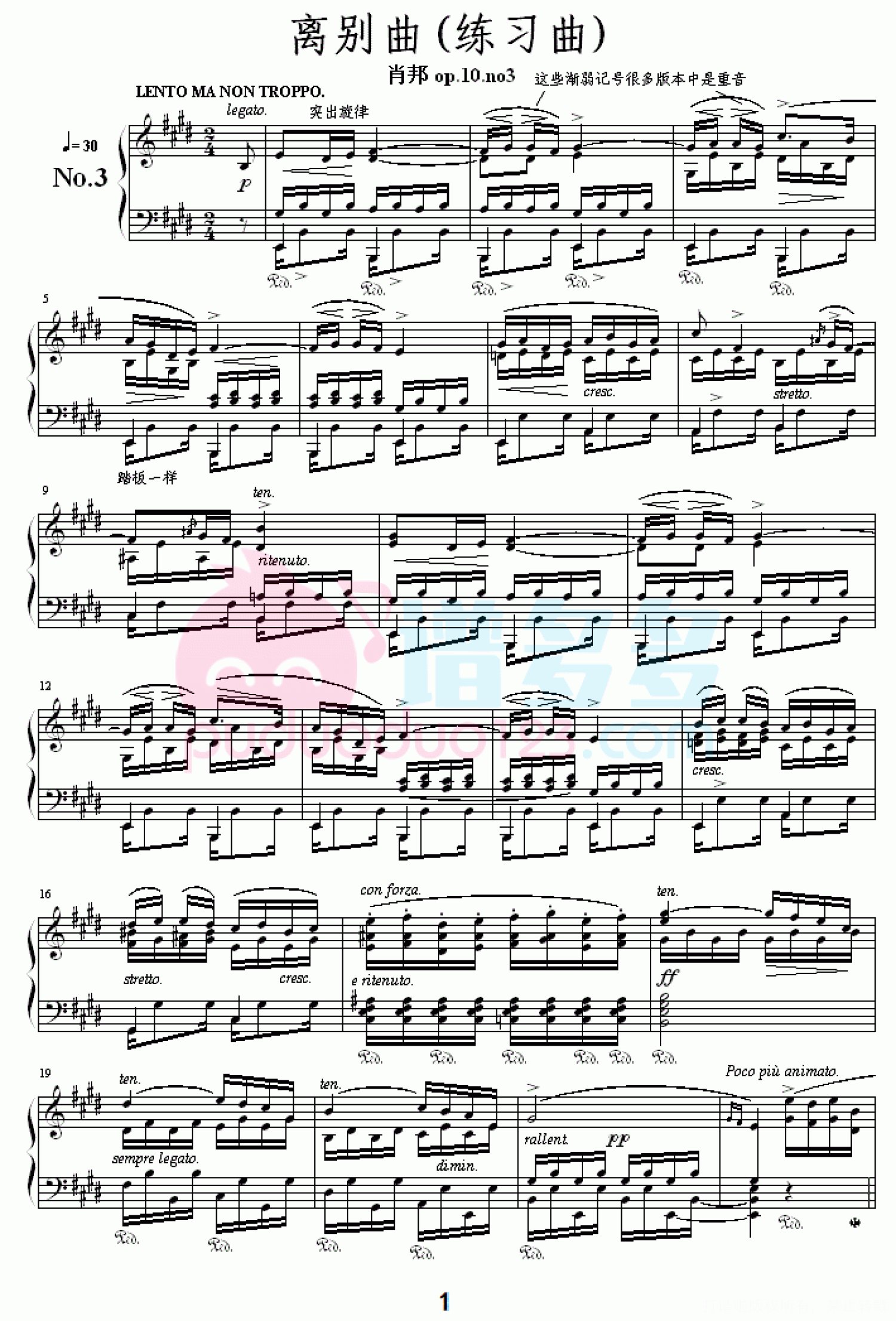 离别曲钢琴谱 - 肖邦