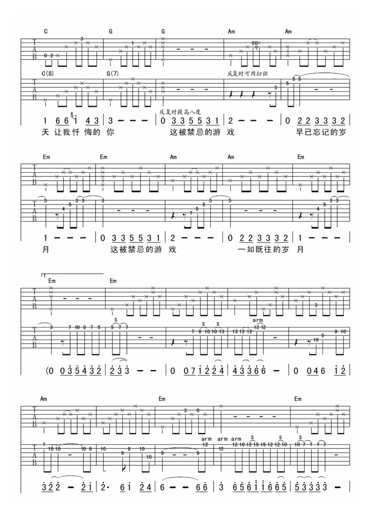 当前位置:琴谱网>吉他弹唱>被禁忌的游戏