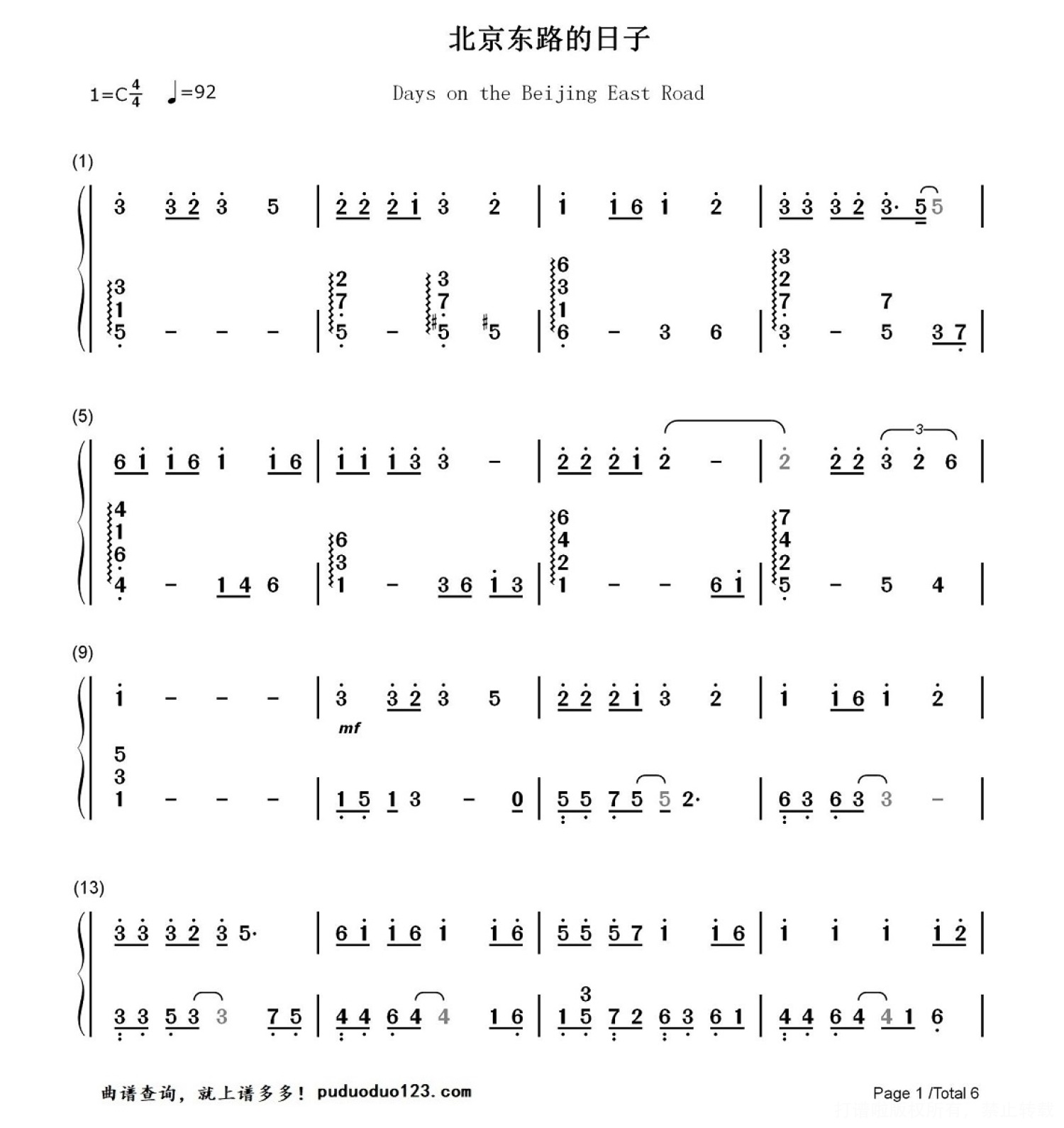 曲谱介绍: 本曲谱是北京东路的日子简谱。在一个充满着收获、弥漫着纯洁情怀又带着一点点伤感的毕业季,南京外国语学校高三(6)班女生汪源创作了《北京东路的日子》这首歌曲。 北京东路是南京中心城区的一条主干道,也是南京外国语学校所在的街区。汪源在她18岁生日前一天,拉着12位同学走进南京绝世瑶音录音棚,把即将告别的高中生活用歌声永远铭刻在记忆里,如同留在这条路的每一个脚步,以此来纪念他们那些逝去的青春。歌曲视频在网络发布,走红并受到了媒体的关注。