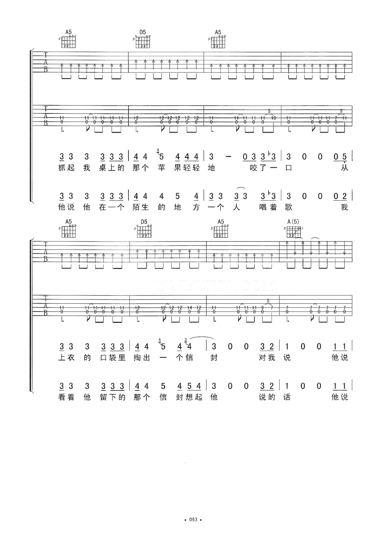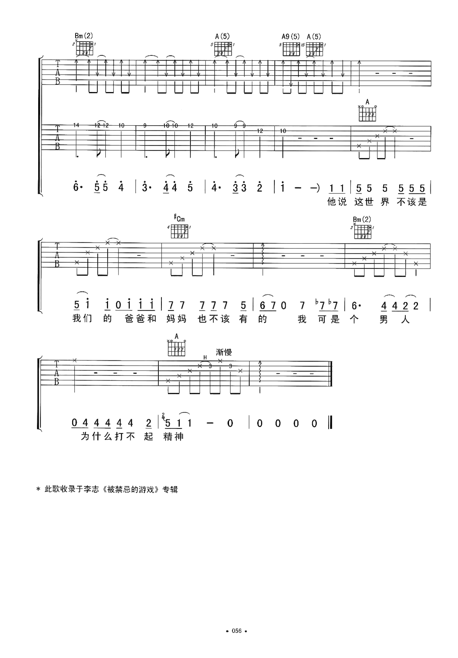 曲谱介绍: A调双吉他版 李志《黑色信封》吉他弹唱六线谱