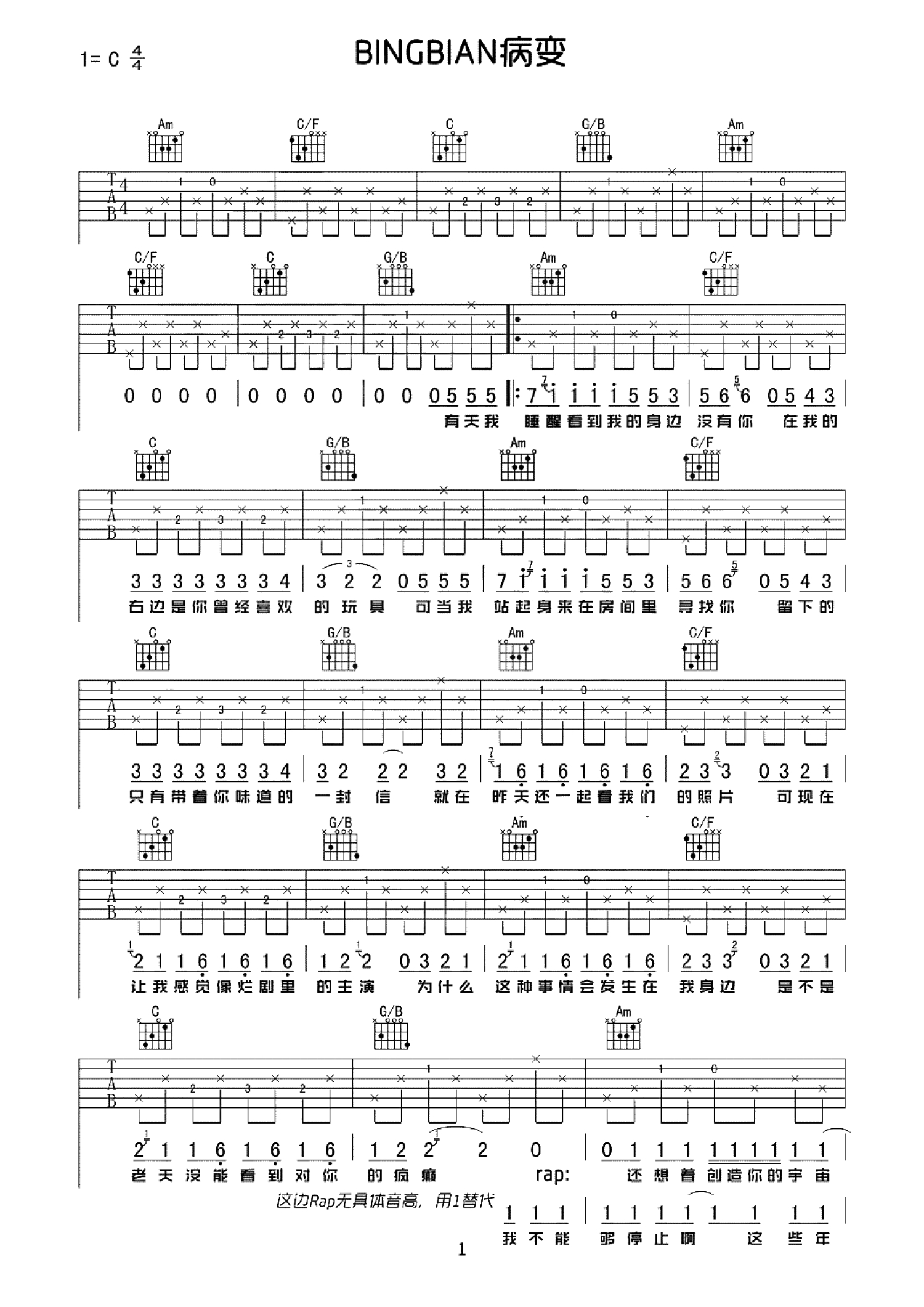 当前位置:琴谱网>吉他弹唱>病变