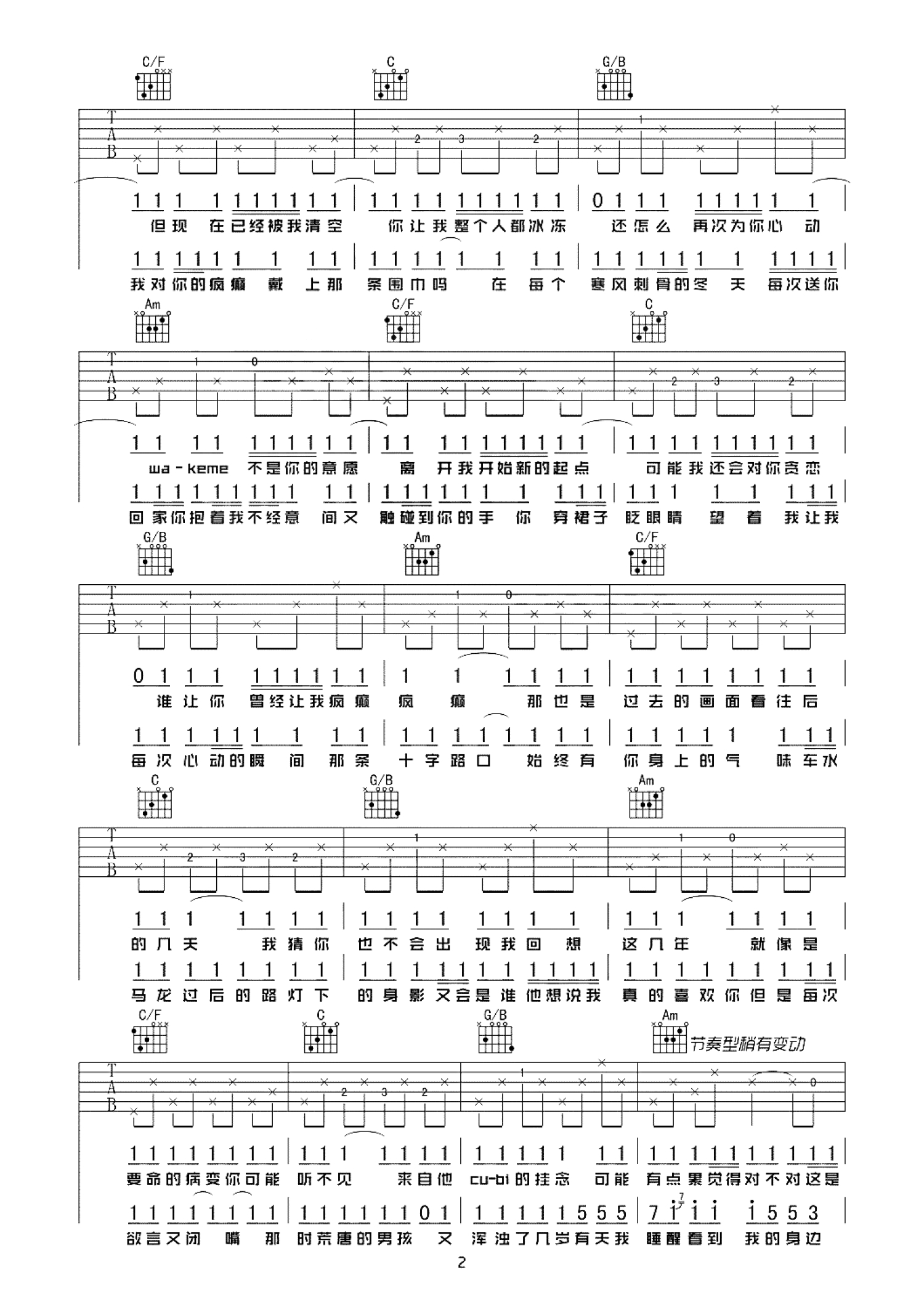 曲谱介绍: 病变吉他谱,原调E调,变调夹夹四品,选用C调指法编配,一首洗脑的网络歌曲,伤感的歌词,动听的旋律,勾起了多少人对喜欢人的回忆。鞠文娴翻唱的《病变》非常的火,相比较男生版,女生版更加细腻好听。