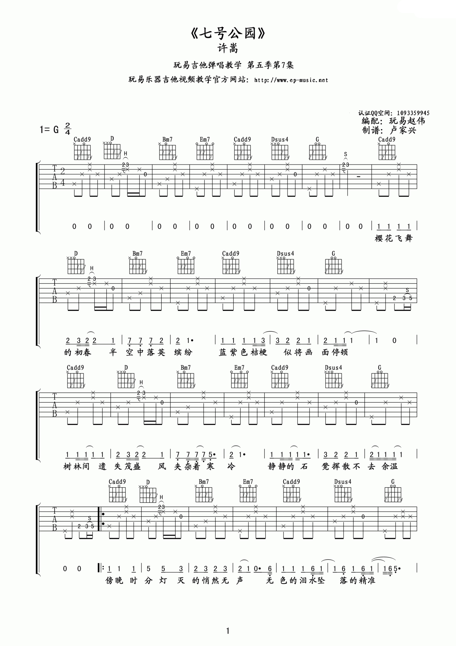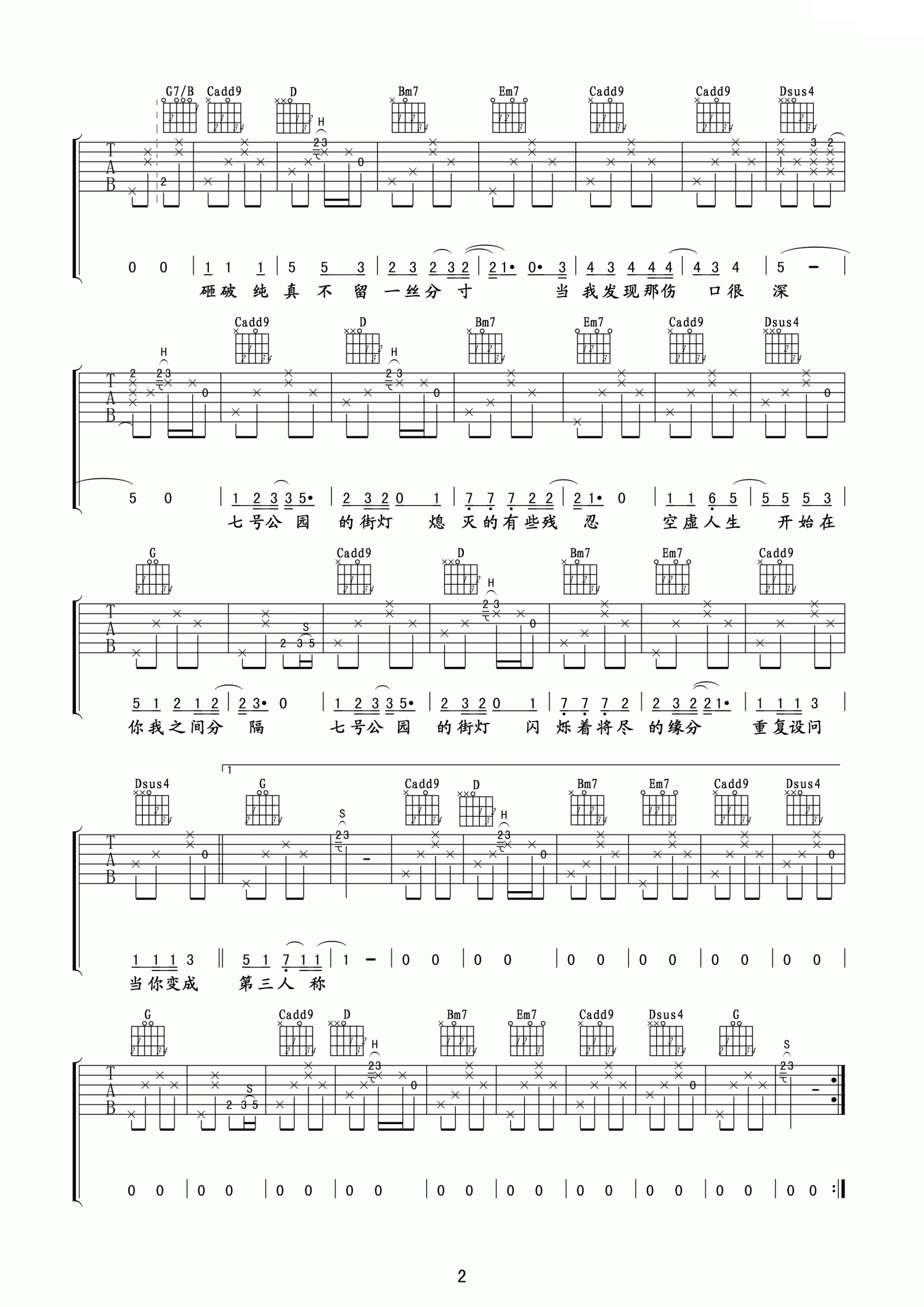 曲谱介绍: 许嵩《七号公园》吉他谱_G调吉他弹唱谱