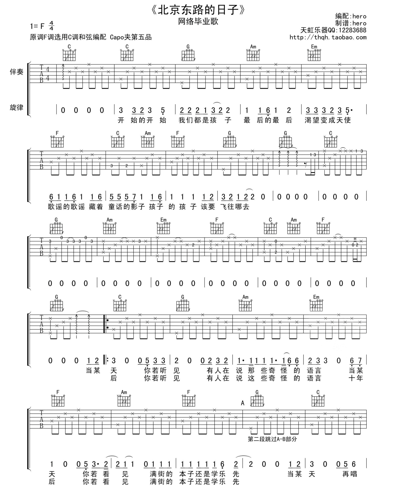 北京东路的日子吉他谱 - 网络毕业歌 - C调吉他弹唱谱