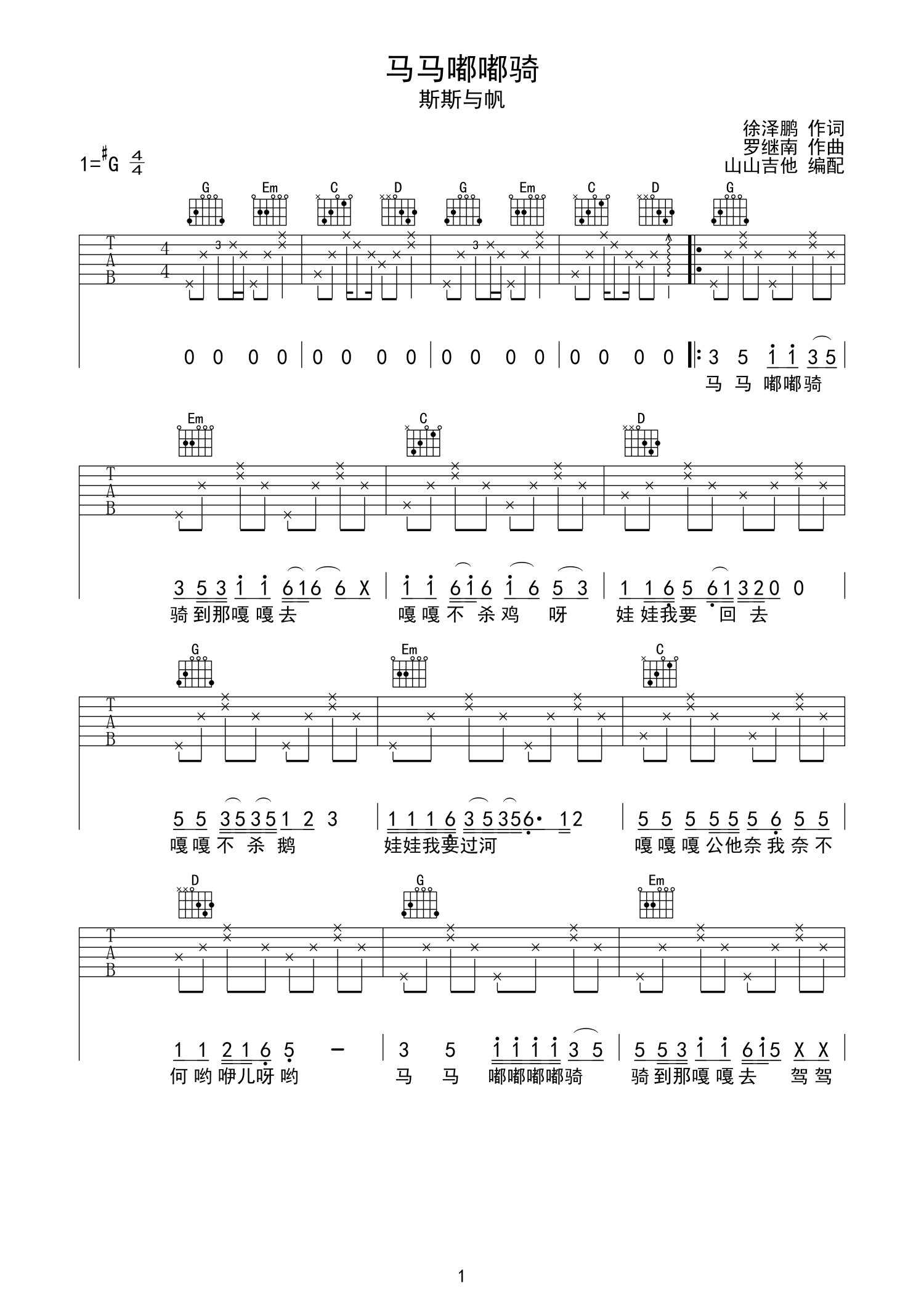 马马嘟嘟骑吉他谱 - 斯斯与帆 - G调吉他弹唱谱