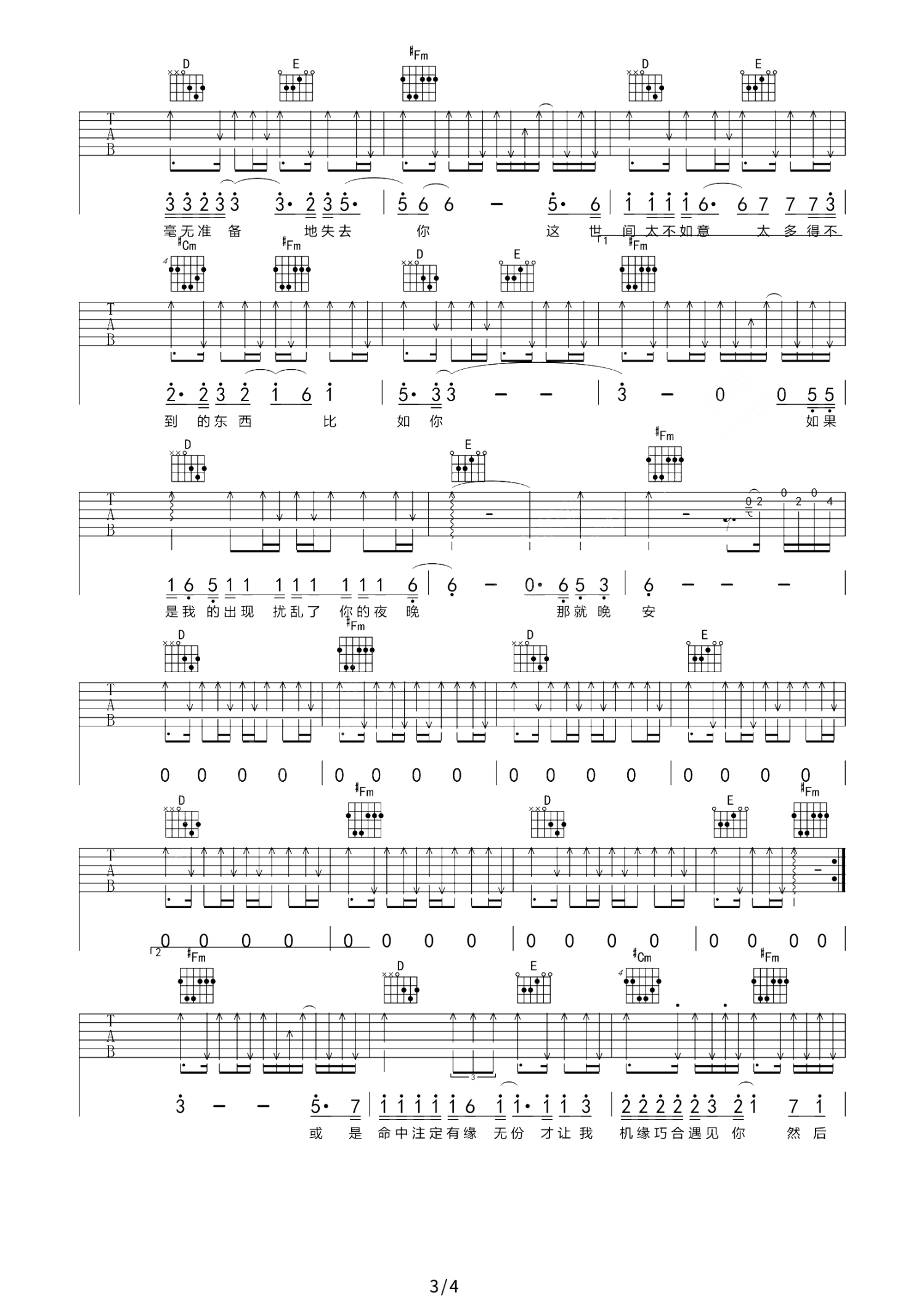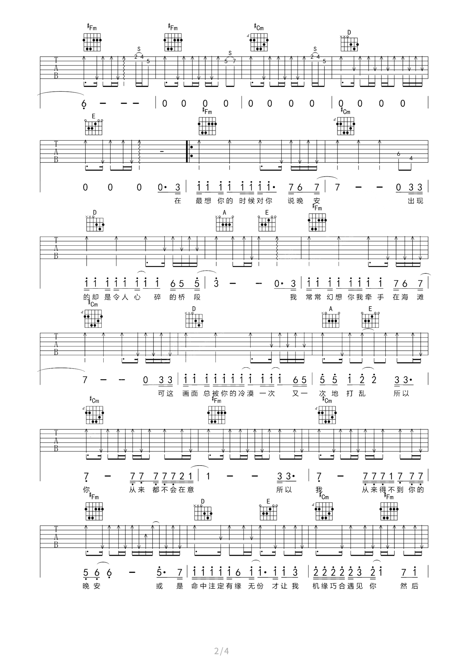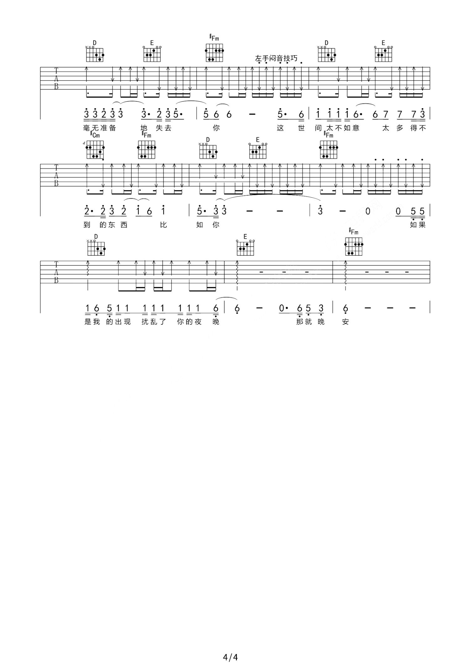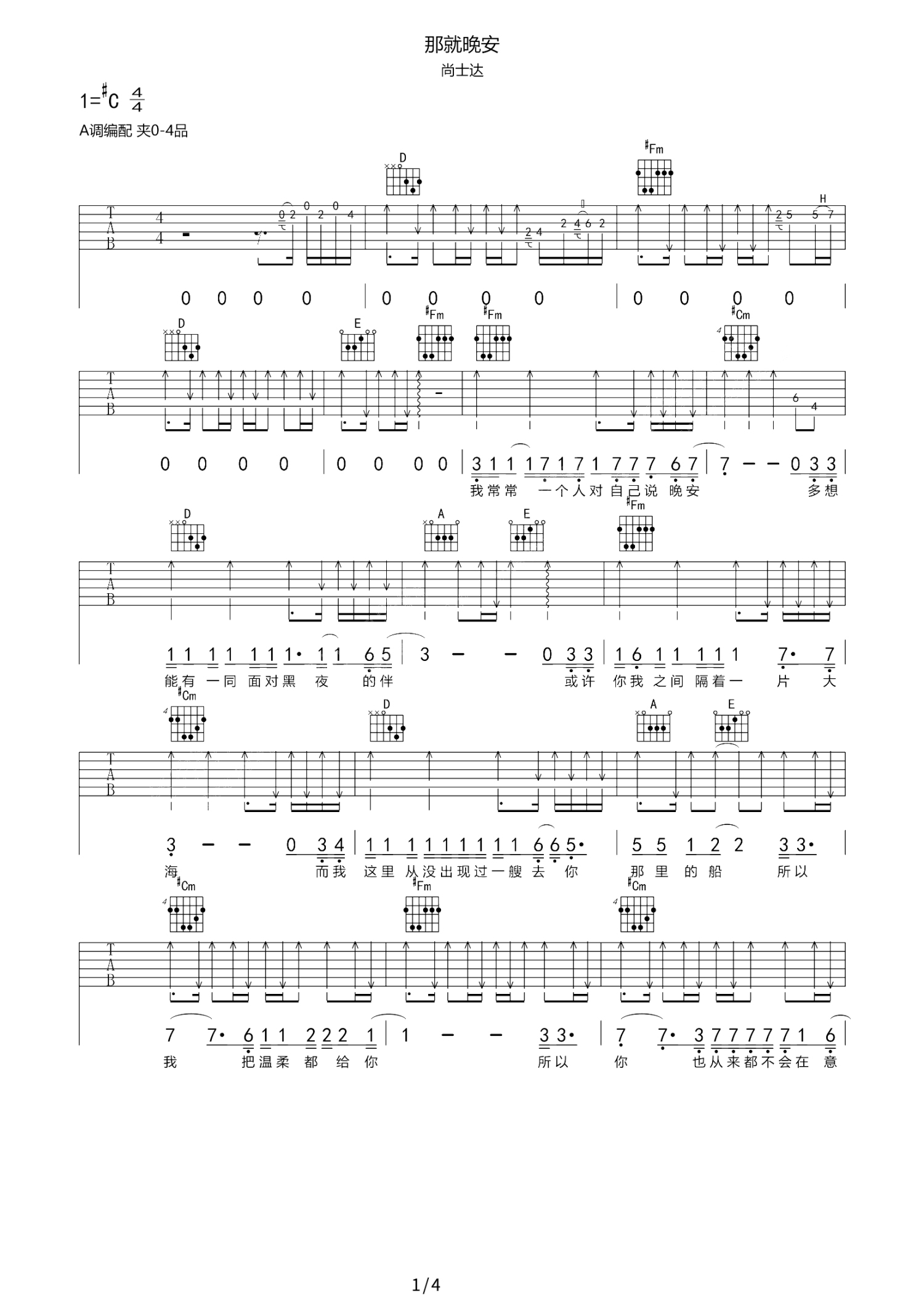 曲谱介绍: 尚士达《那就晚安》吉他谱_弹唱谱