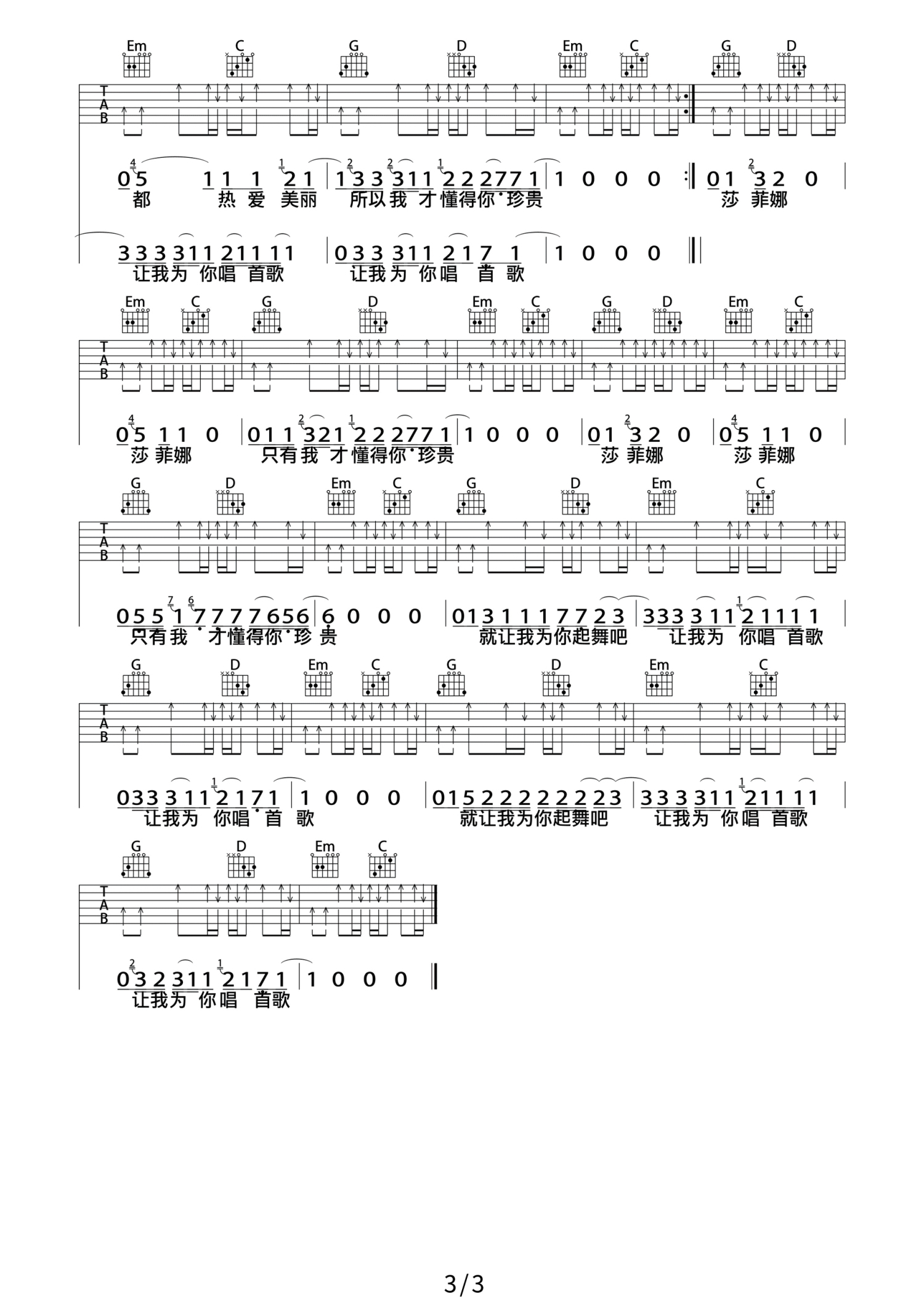 当前位置:琴谱网>吉他弹唱>为你唱首歌