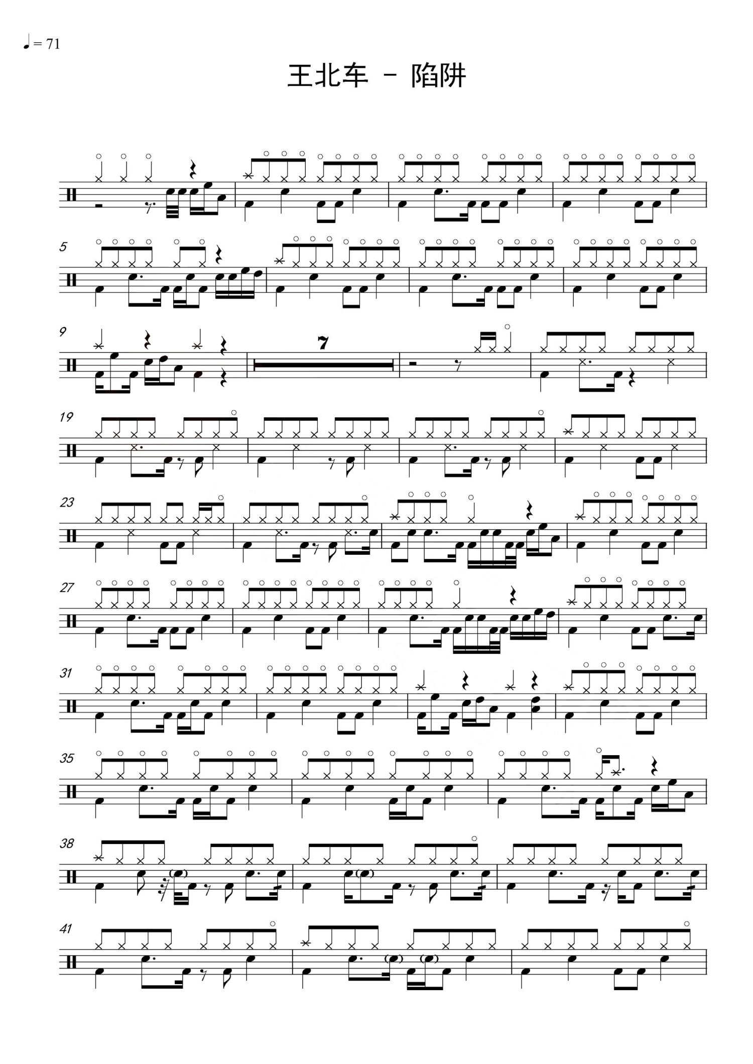 陷阱鼓谱 - 王北车 - 架子鼓谱