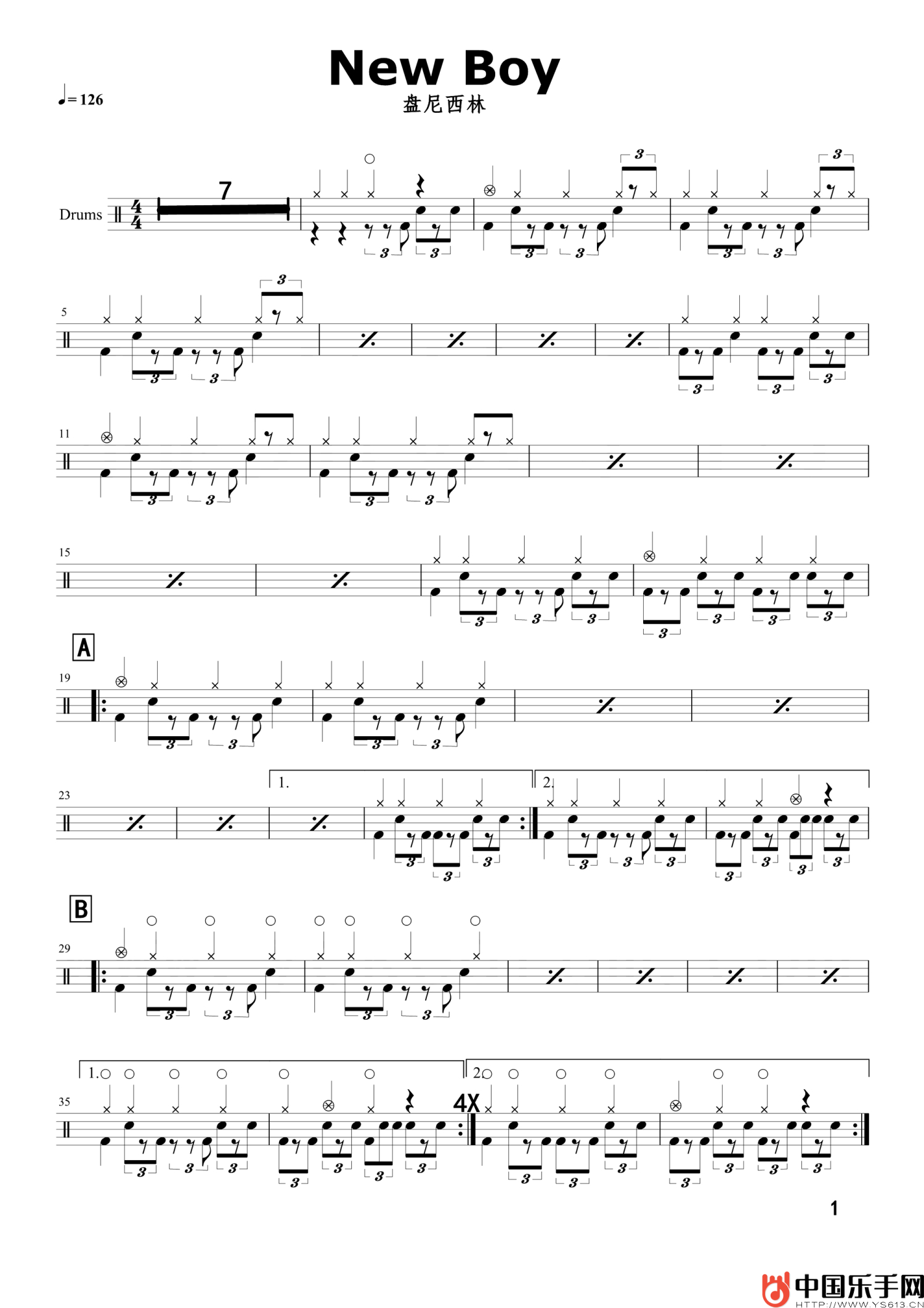 New Boy鼓谱 - 盘尼西林 - 架子鼓谱