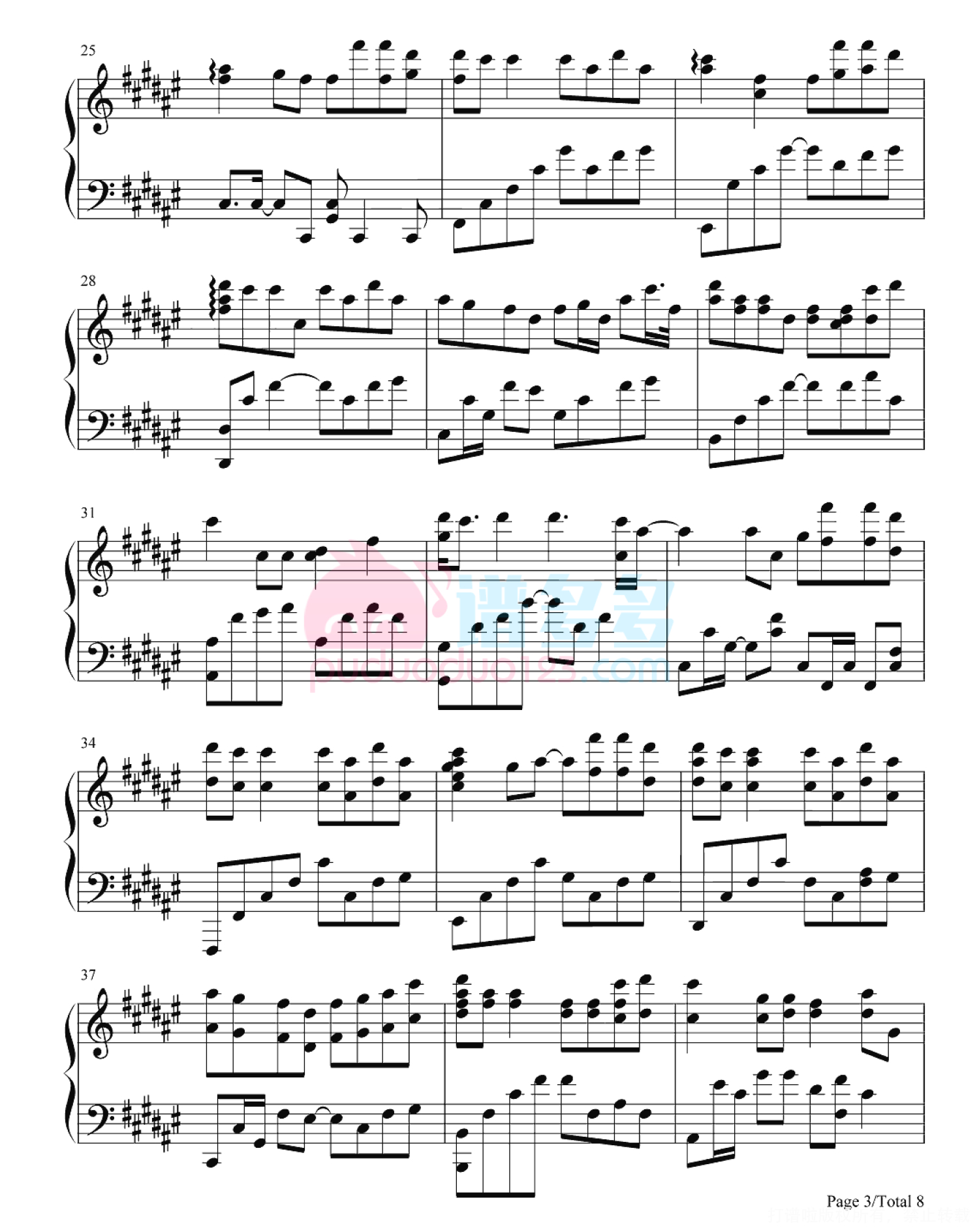 凡是琴谱网站内的版权保护水印,打印时,都会无水印。