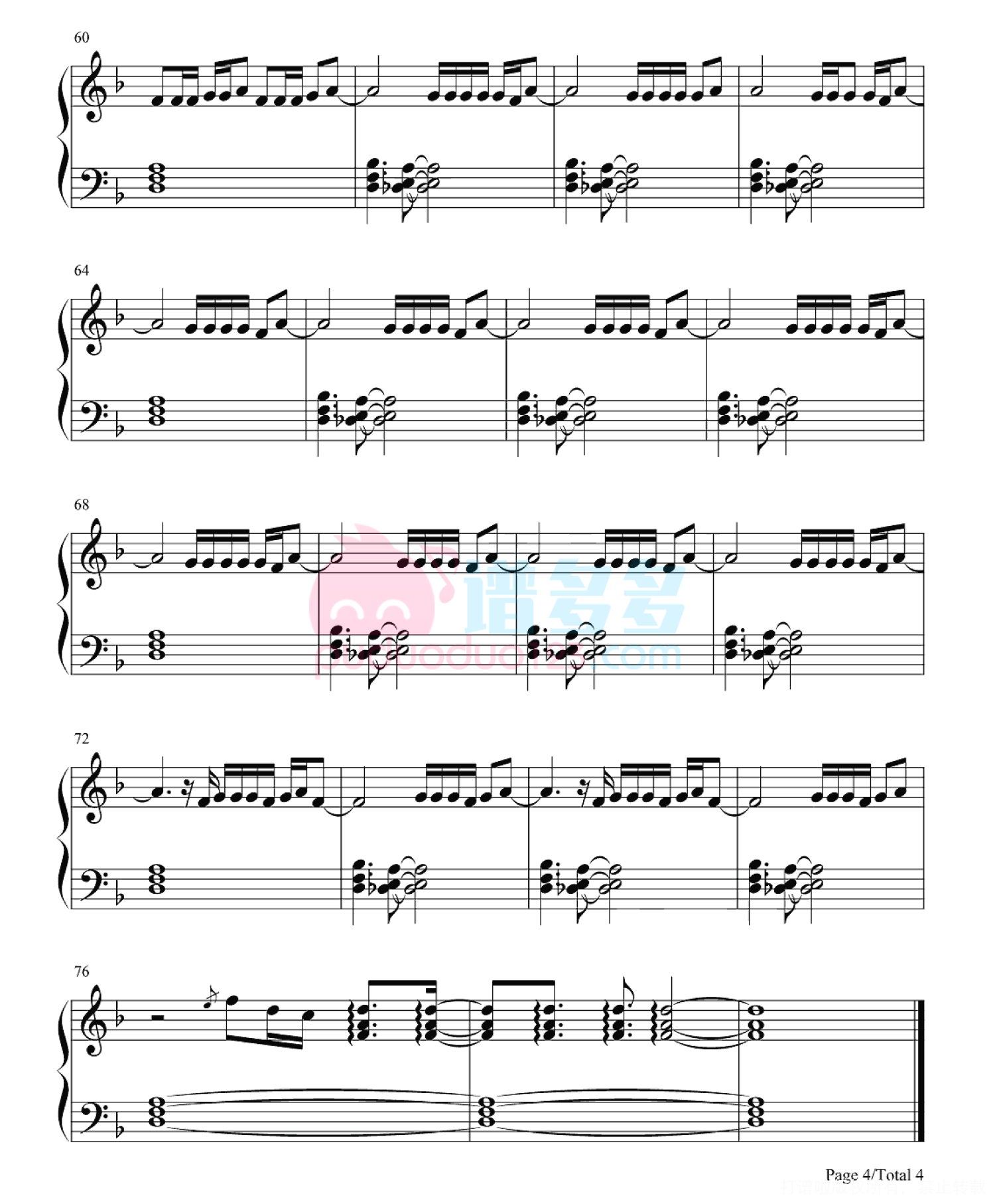 凡是琴谱网站内的版权保护水印,打印时,都会无水印。
