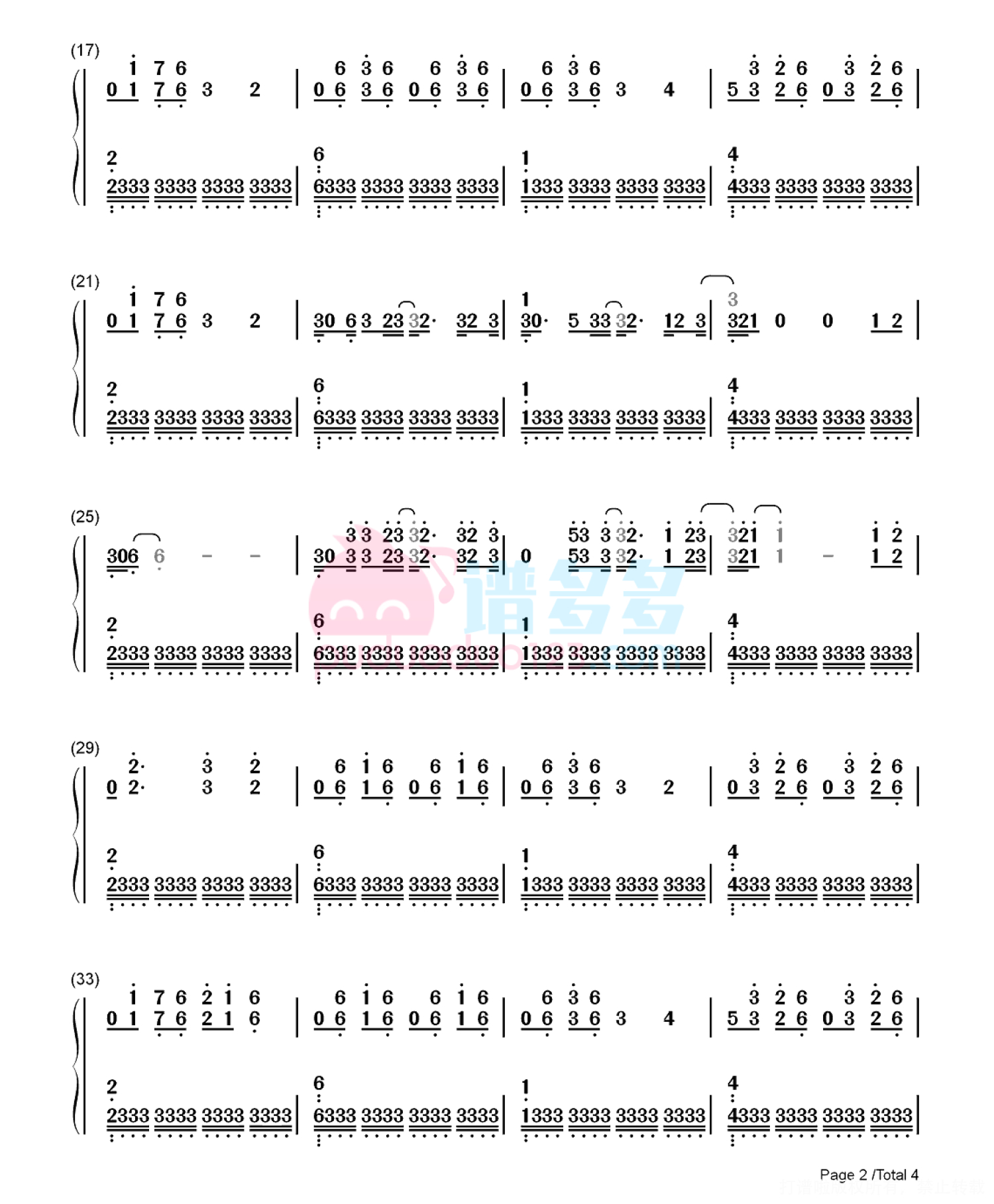 琴谱网尊重作者版权,不会私自去掉作者提供的水印,此类图谱如需去掉水印,请自行去除后,通过站内自助上传打印即可。