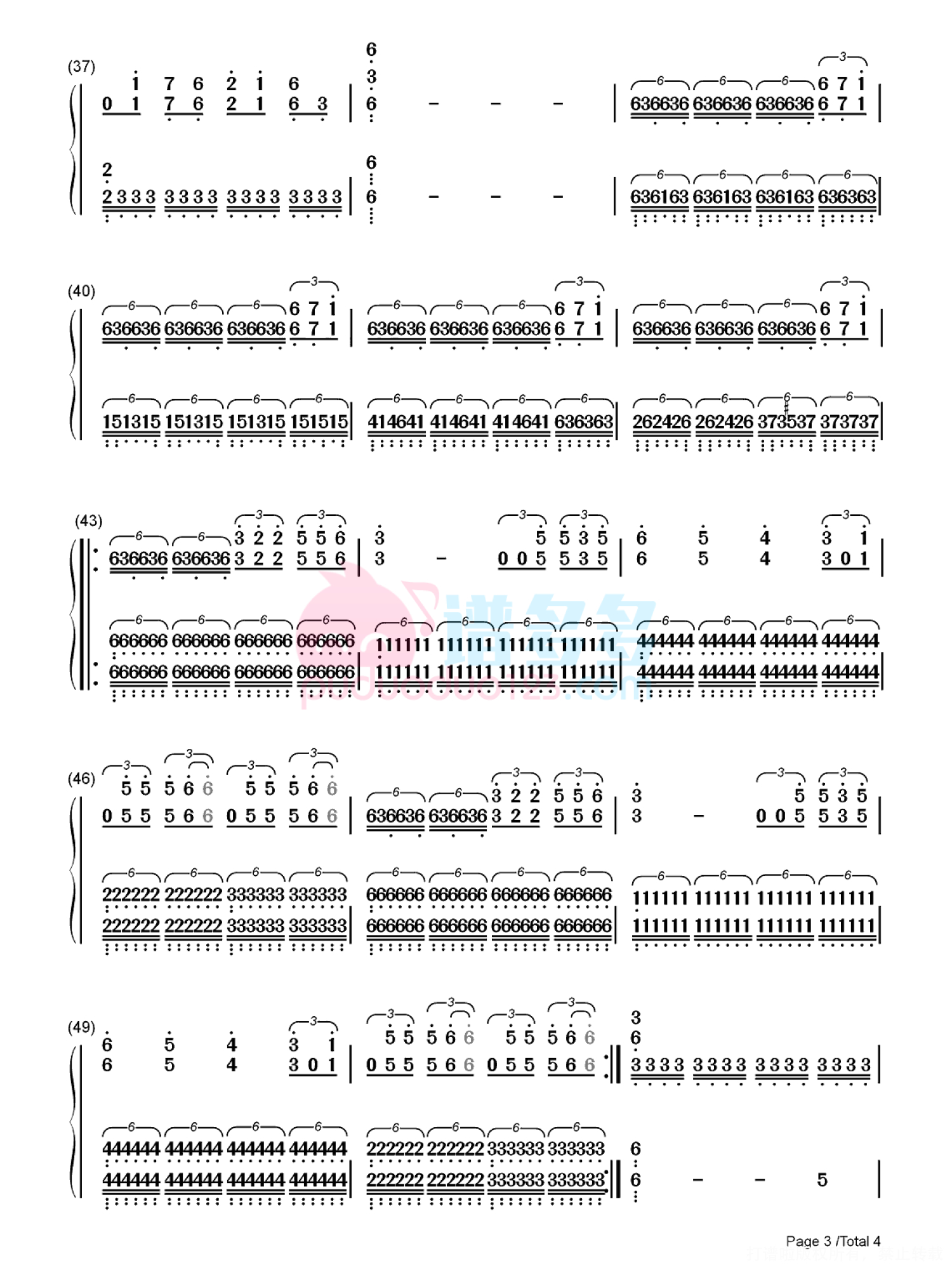 凡是琴谱网站内的版权保护水印,打印时,都会无水印。