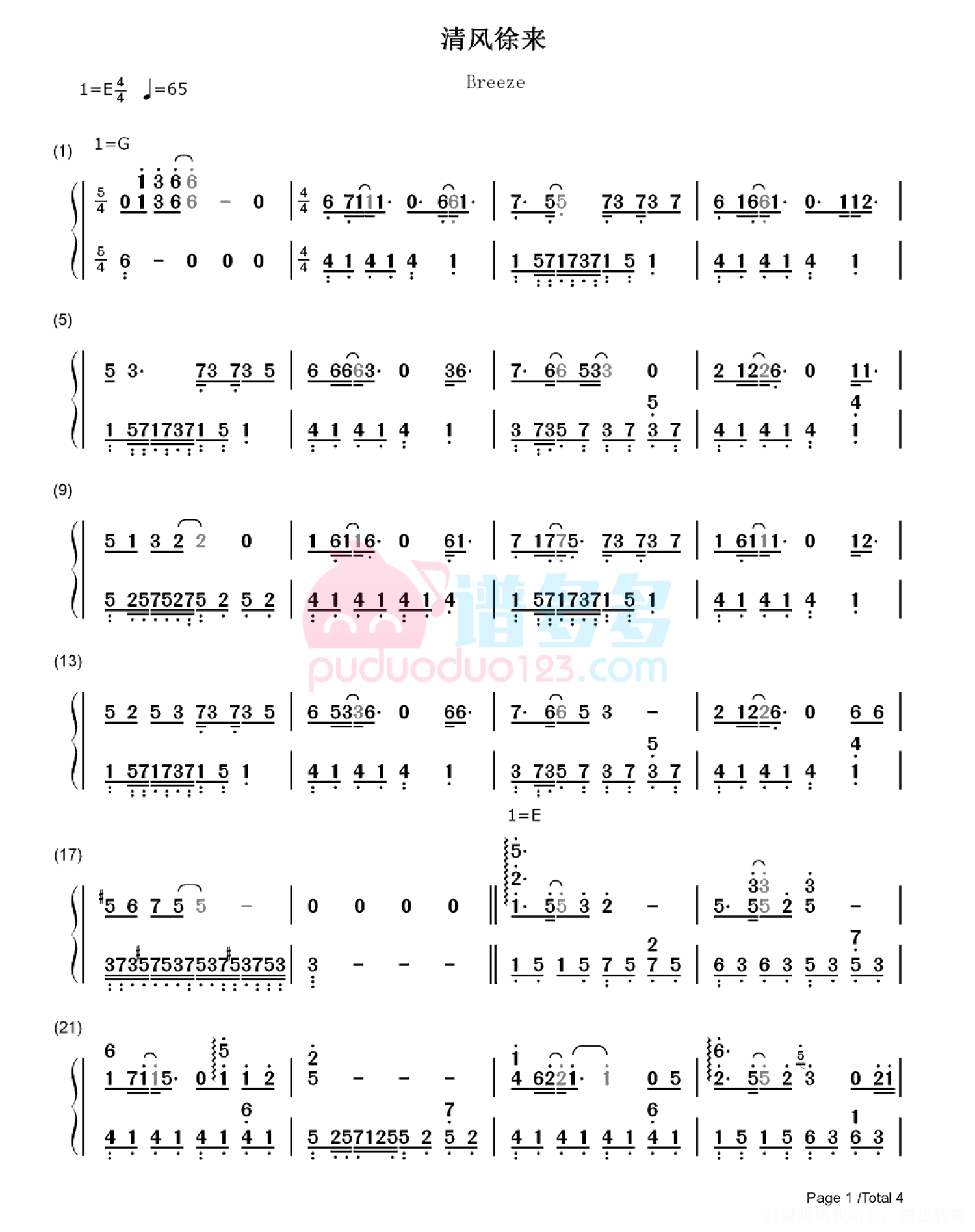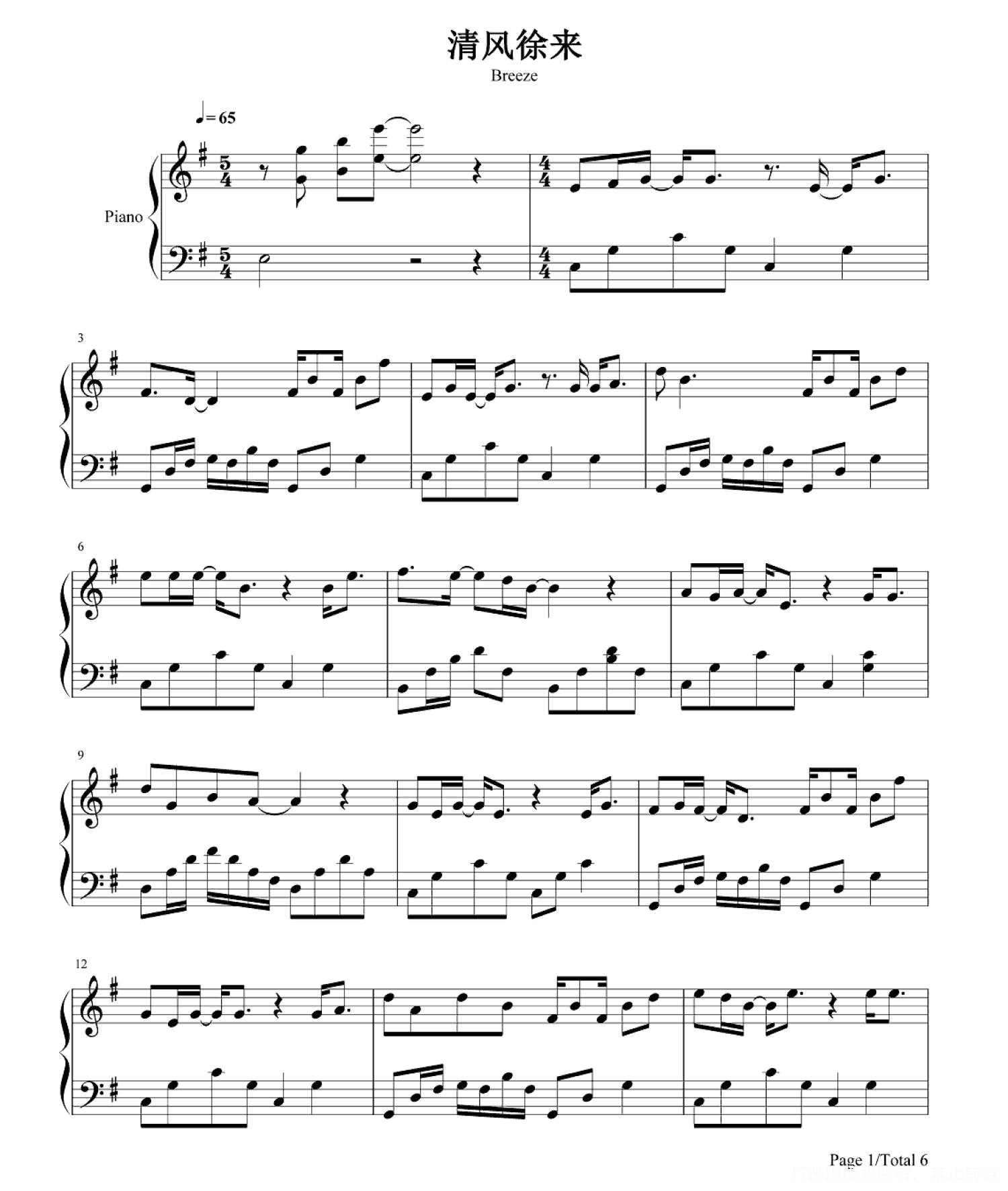 曲谱介绍: 本曲谱是《清风徐来》的钢琴谱,五线谱+双手简谱,完整版共10张PNG图高清图片谱。这徐峥导演喜剧电影《港囧》的主题曲,影片讲述了徐来陪伴老婆及家人来到香港旅游,计划与大学初恋杨伊偷偷会面,无奈被小舅子识破其醉翁之意不在酒,从而引发一场欢乐香港游的囧途的故事。