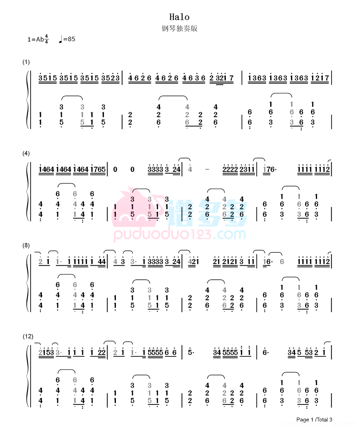 曲谱介绍: 本曲谱是由碧昂丝·吉赛尔·诺尔斯(Beyonce Giselle Knowles)演唱《Halo》的钢琴谱,五线谱+双手简谱,完整版共6张PNG图高清图片谱。碧昂斯是美国著名流行天后级歌手,性感完美女神。碧昂斯有着超越常人的音乐天分,黑人女歌手少有的绝美面孔,让人难以拒绝的性感身材,不到一年时间奇迹般成为美国乃至全世界的娱乐焦点,多次荣获格莱美奖奖项。