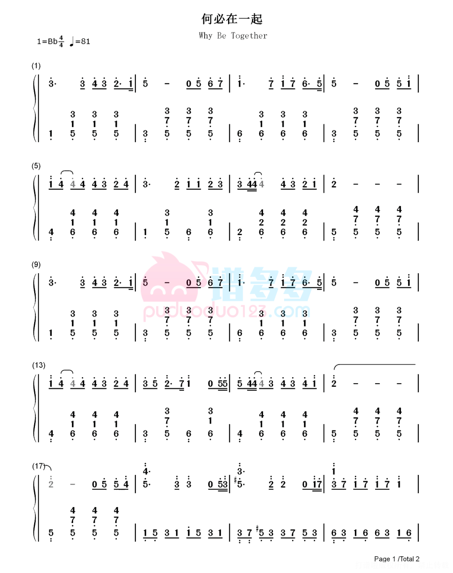 当前位置:琴谱网>钢琴谱>何必在一起