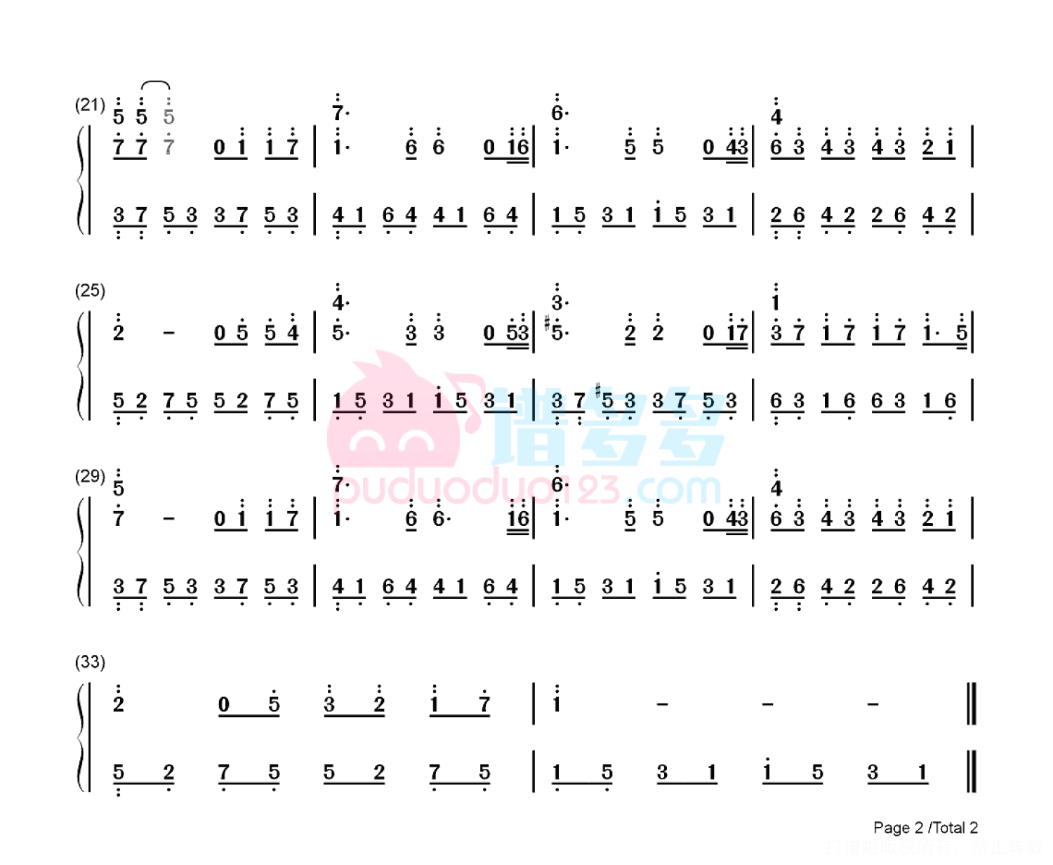 凡是琴谱网站内的版权保护水印,打印时,都会无水印。
