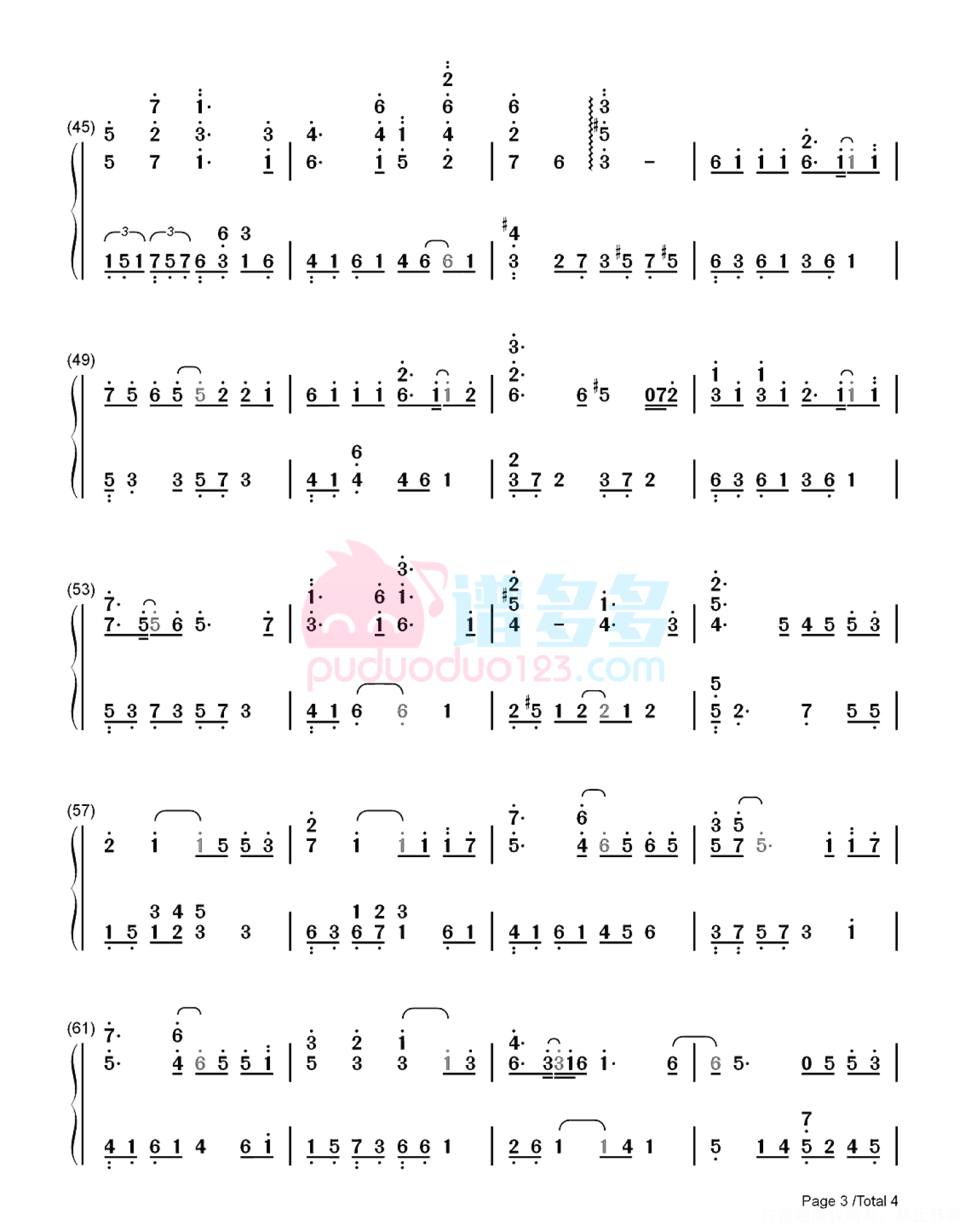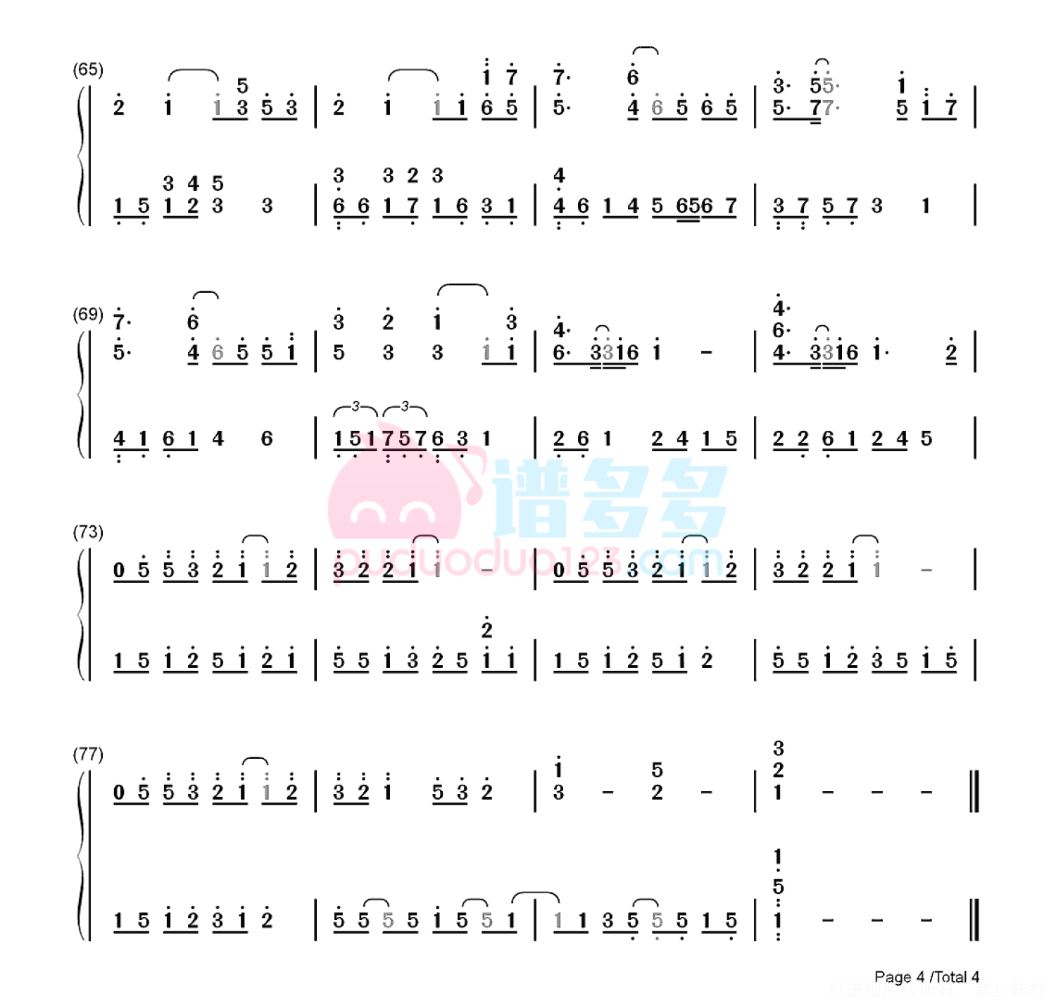 凡是琴谱网站内的版权保护水印,打印时,都会无水印。