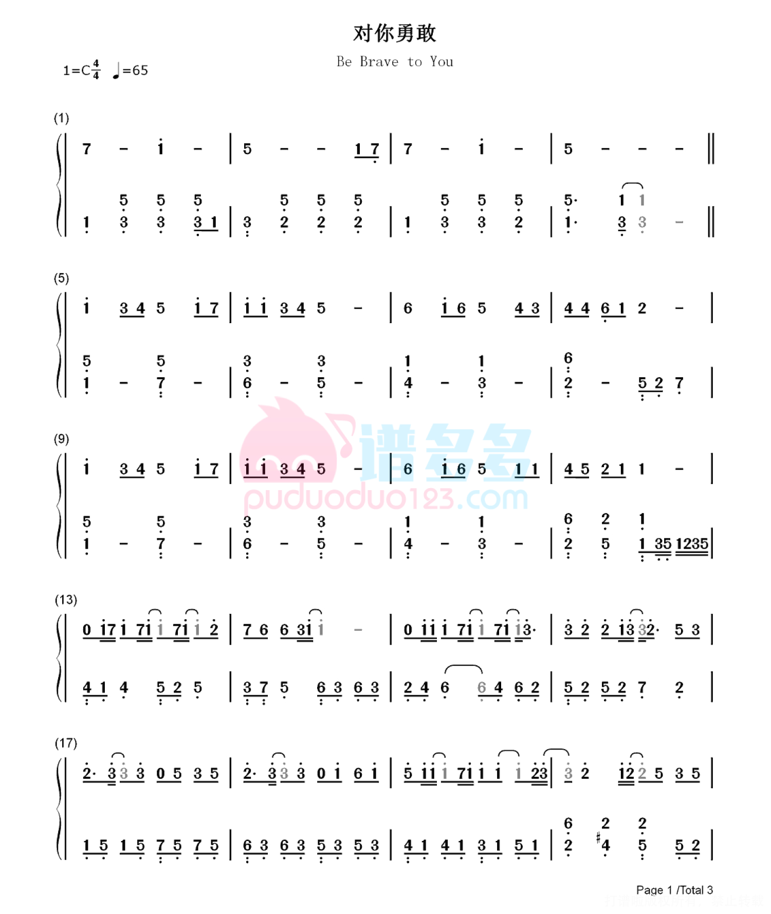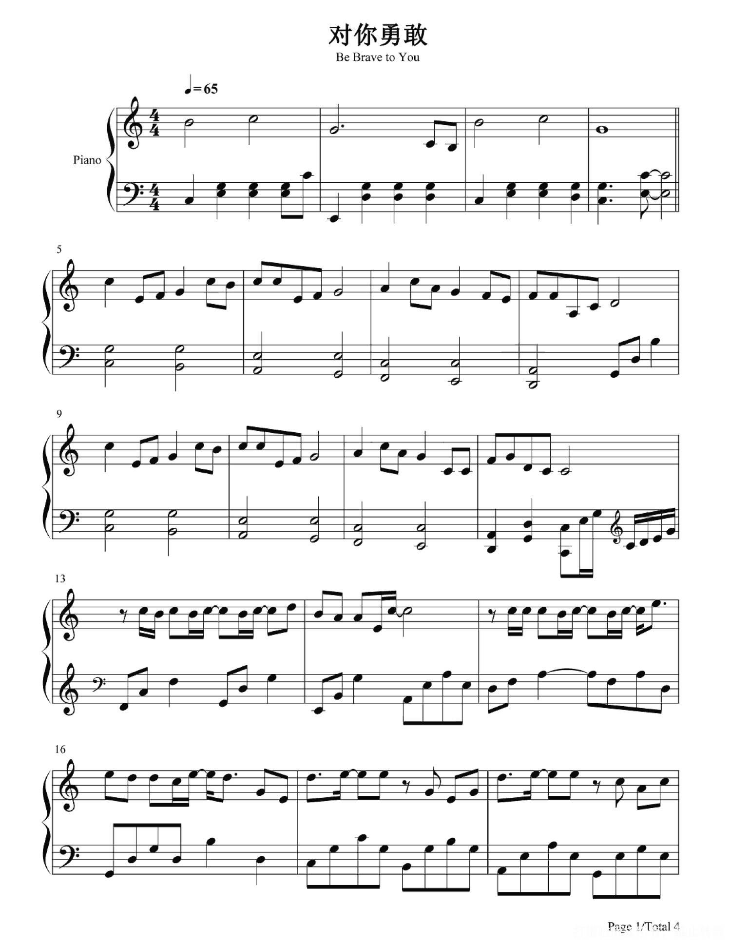 当前位置:琴谱网>钢琴谱>对你勇敢