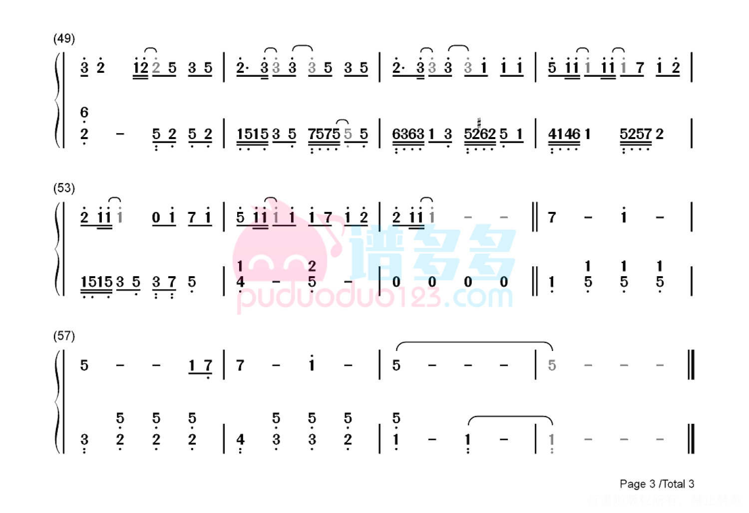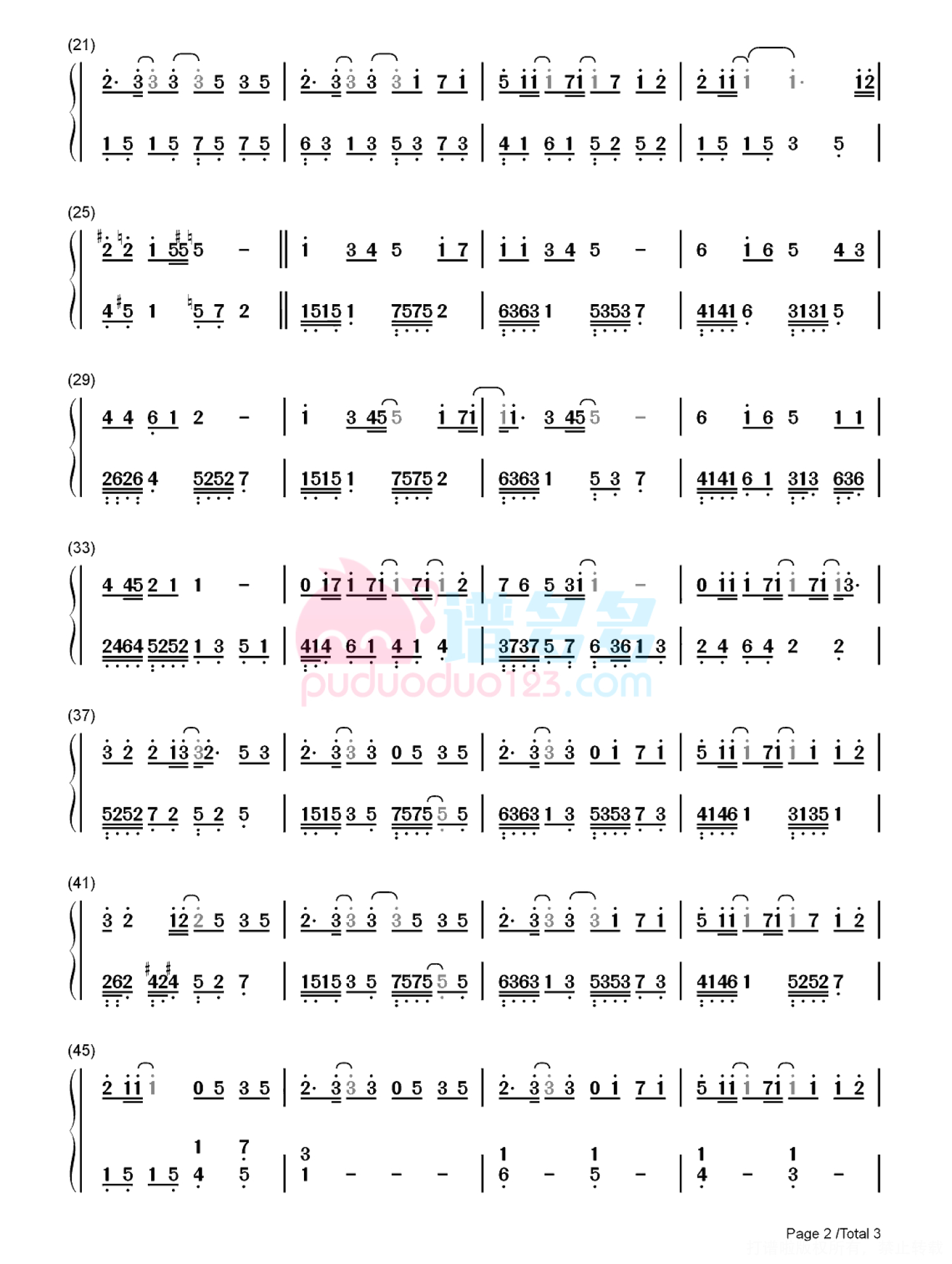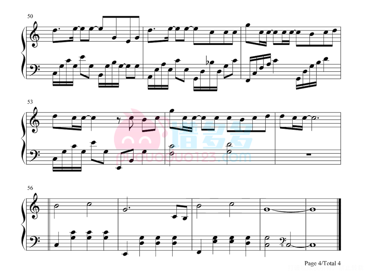 凡是琴谱网站内的版权保护水印,打印时,都会无水印。