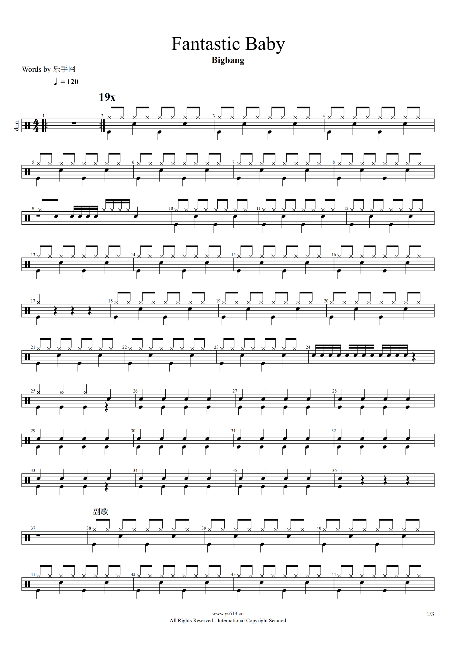 Fantastic Baby鼓谱 - 韩国组合Bigbang - 架子鼓谱