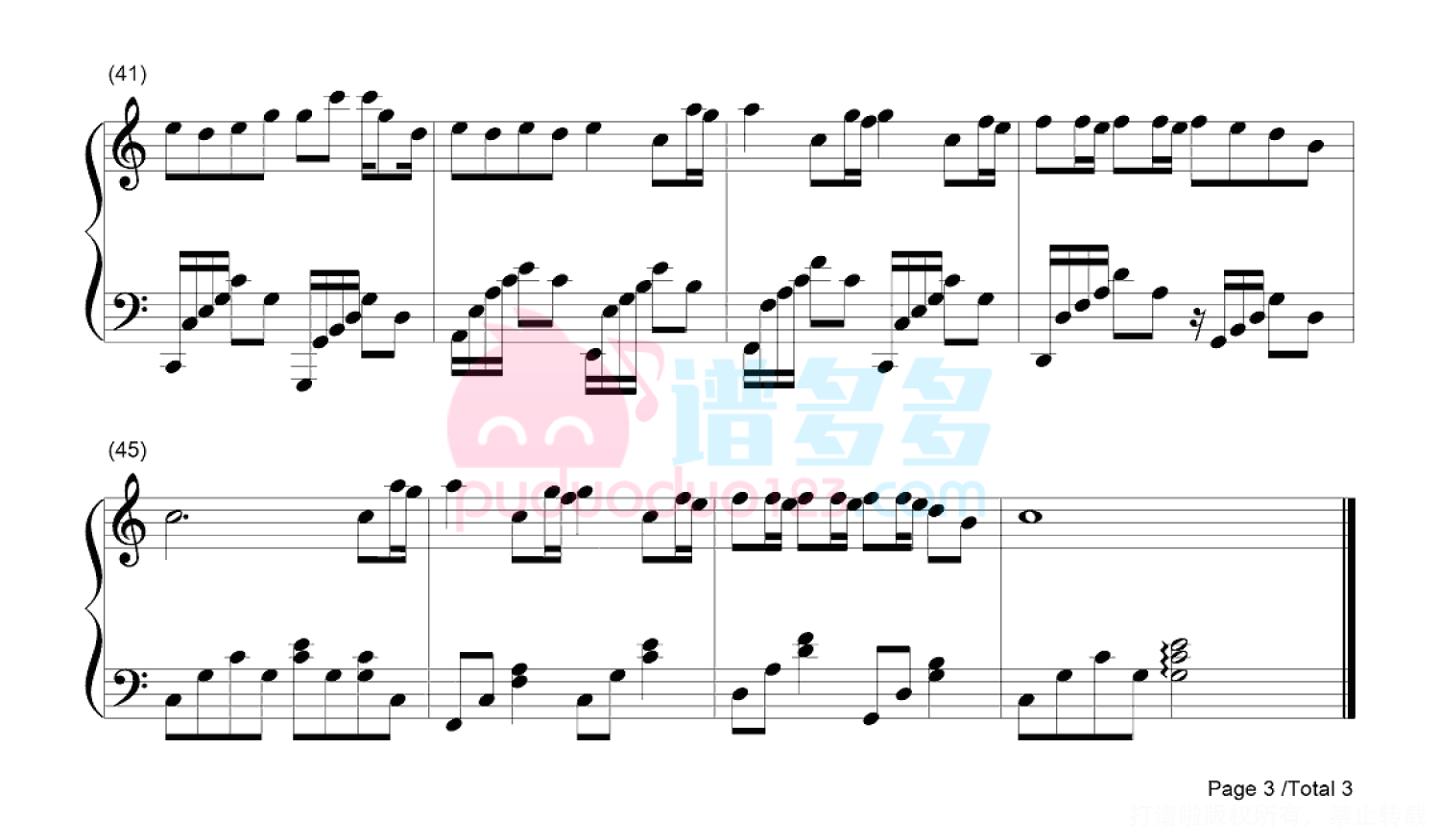 凡是琴谱网站内的版权保护水印,打印时,都会无水印。