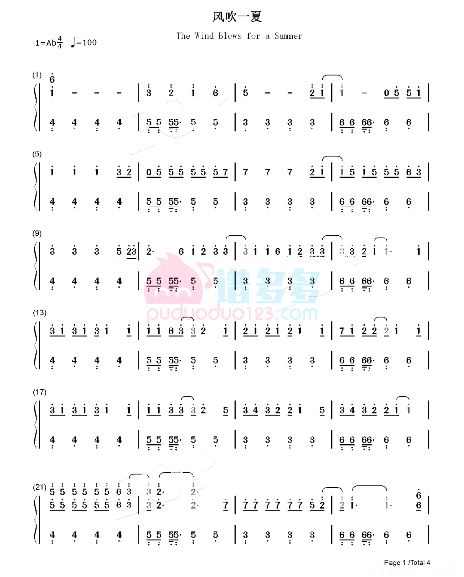 当前位置:琴谱网>钢琴谱>风吹一夏