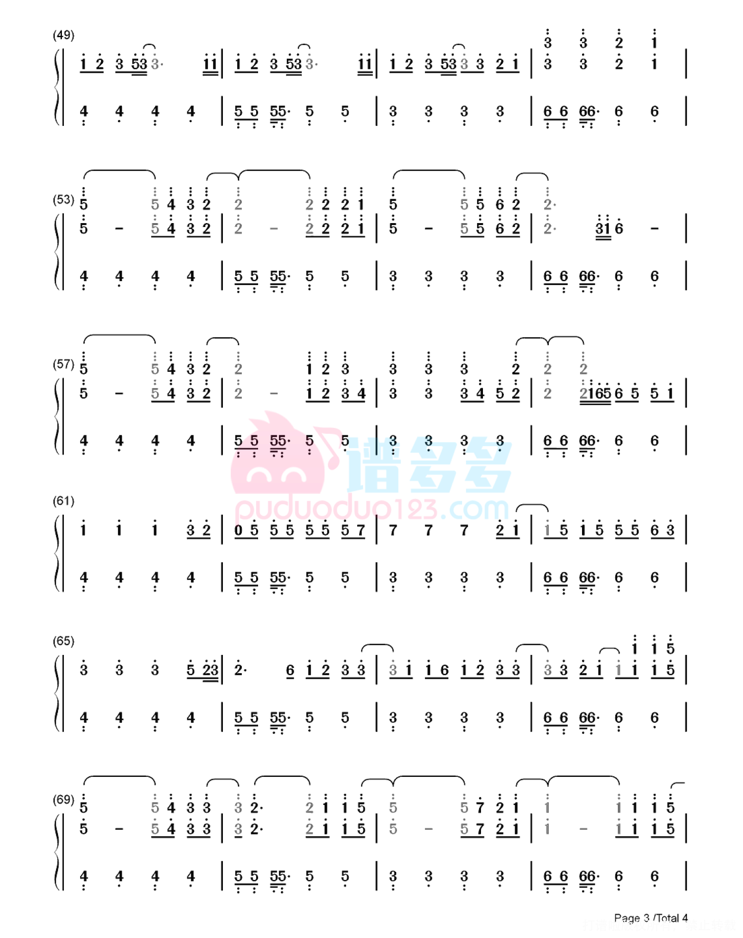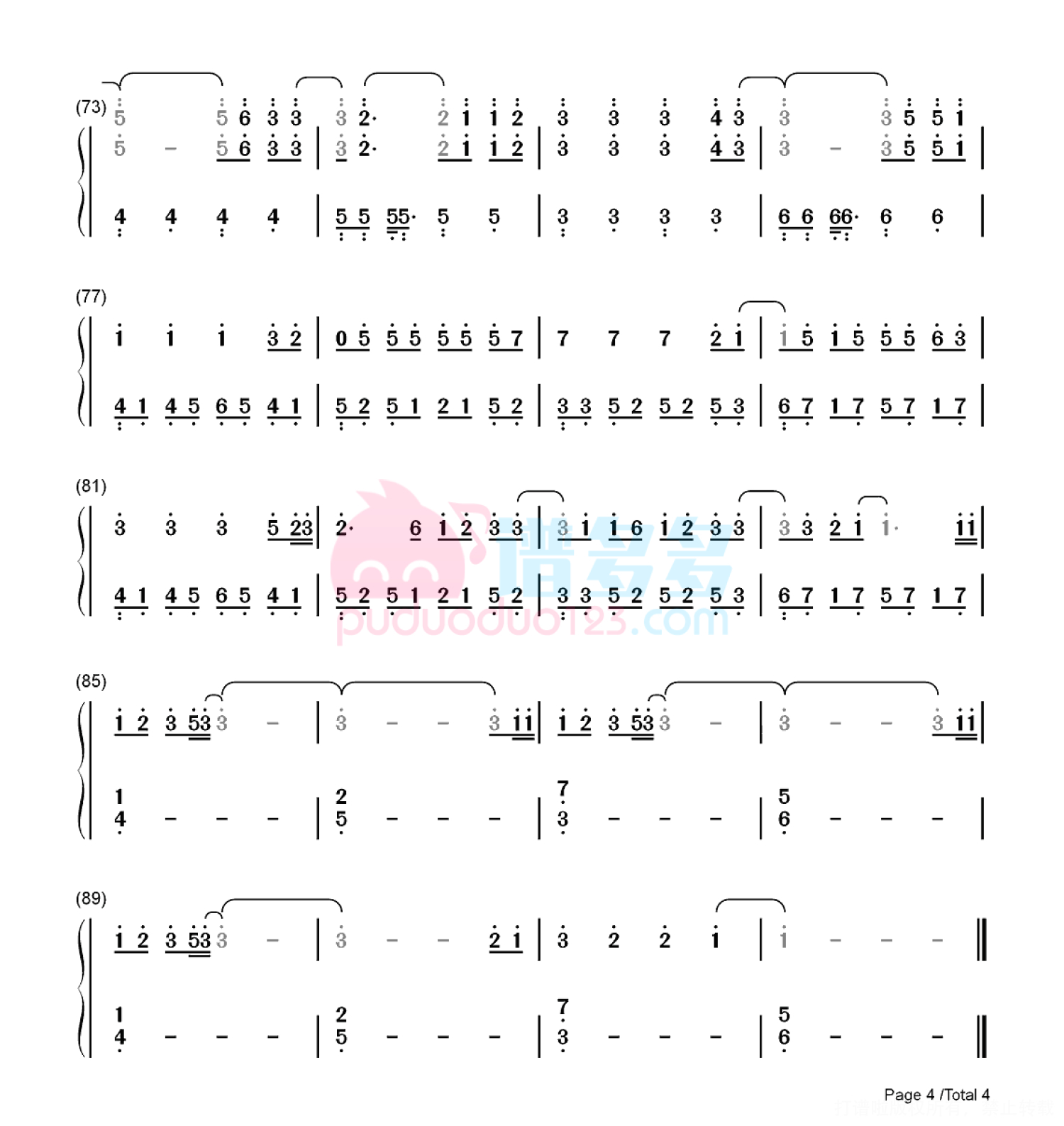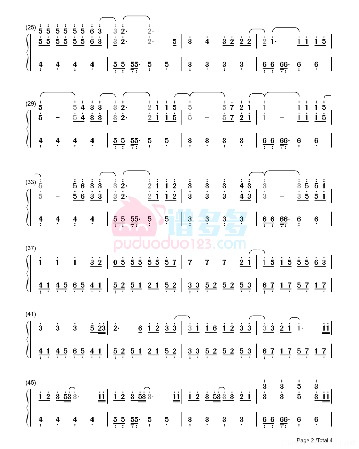 凡是琴谱网站内的版权保护水印,打印时,都会无水印。