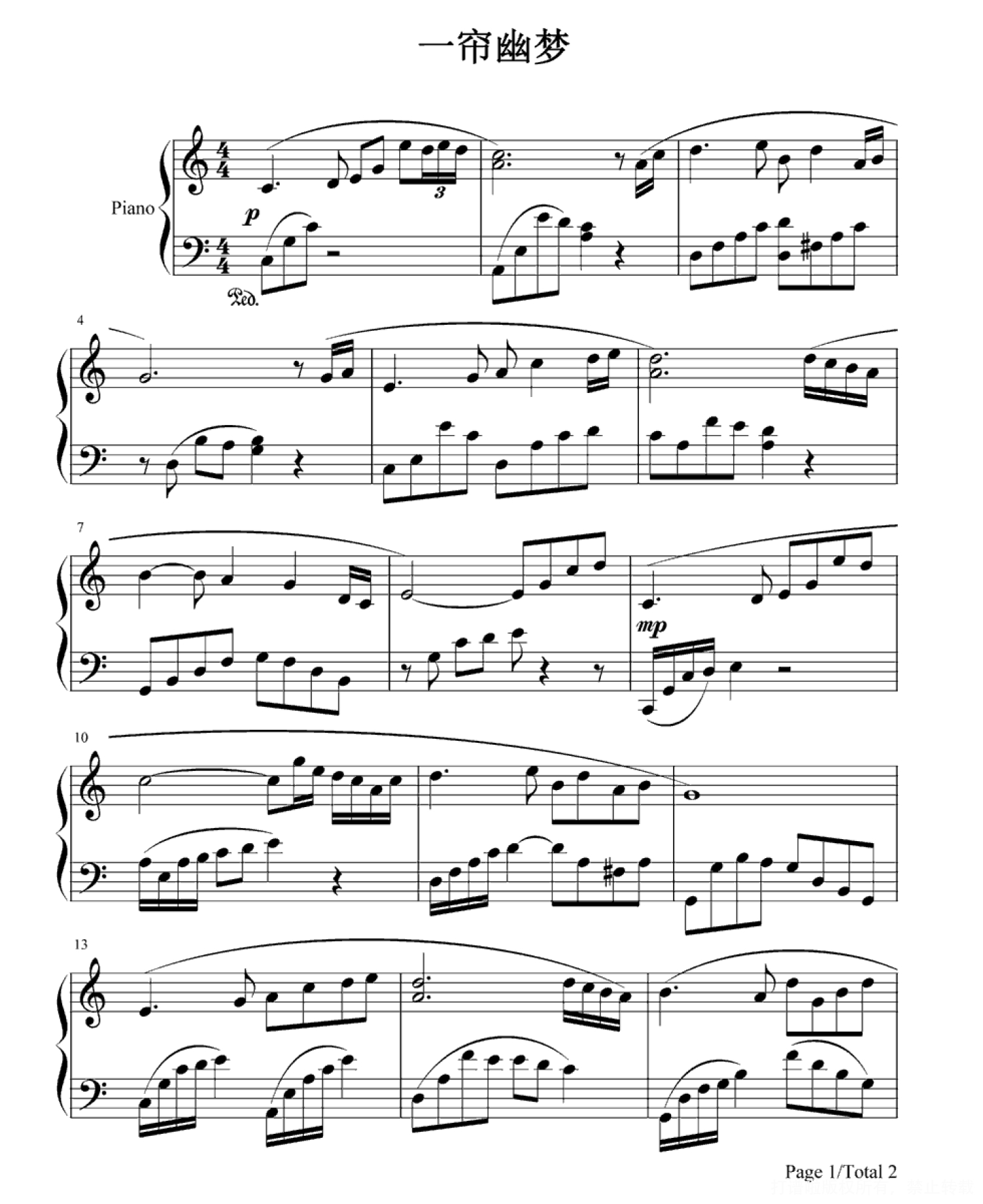 当前位置:琴谱网>钢琴谱>一帘幽梦