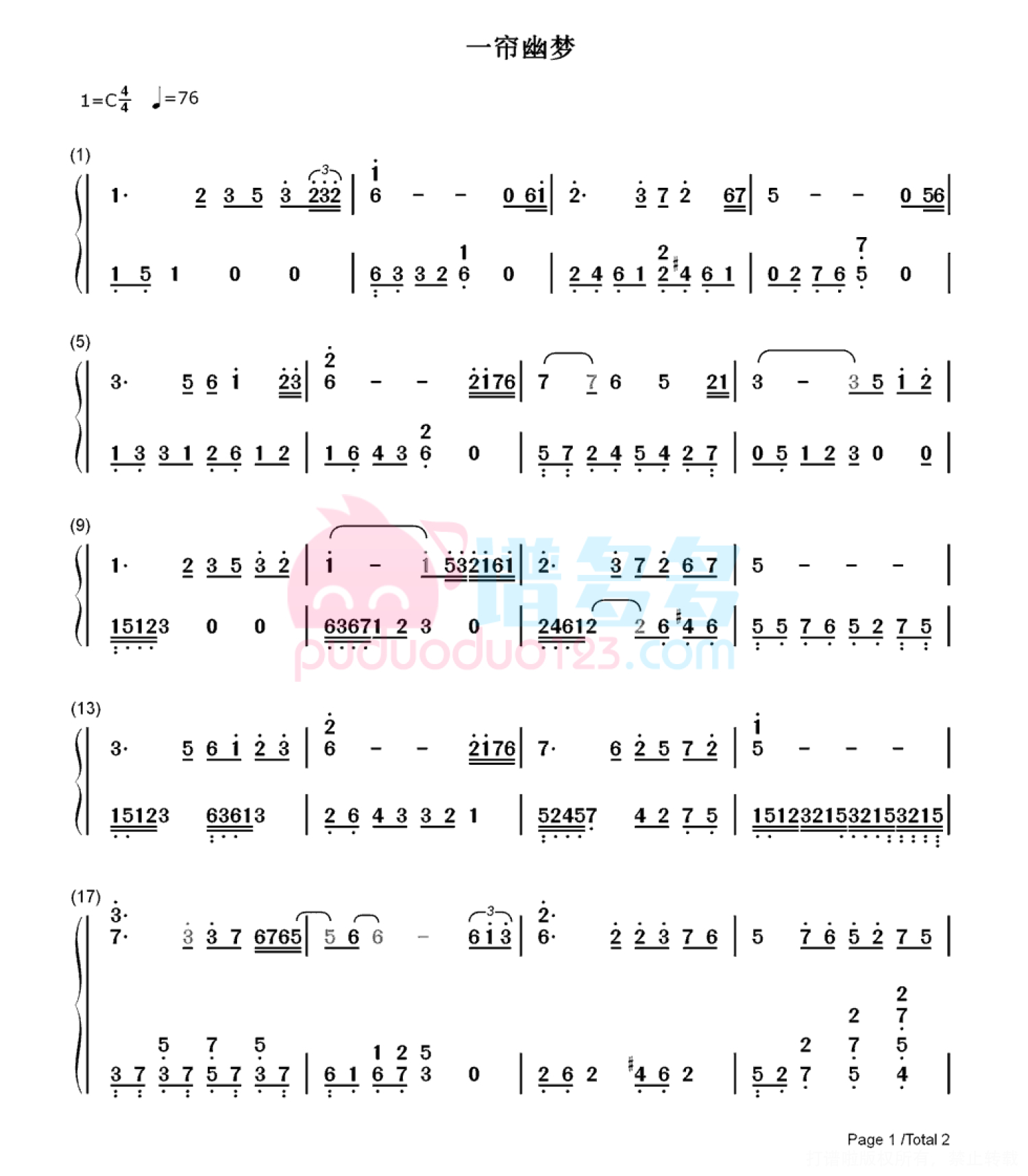 一帘幽梦钢琴谱 - 邓丽君