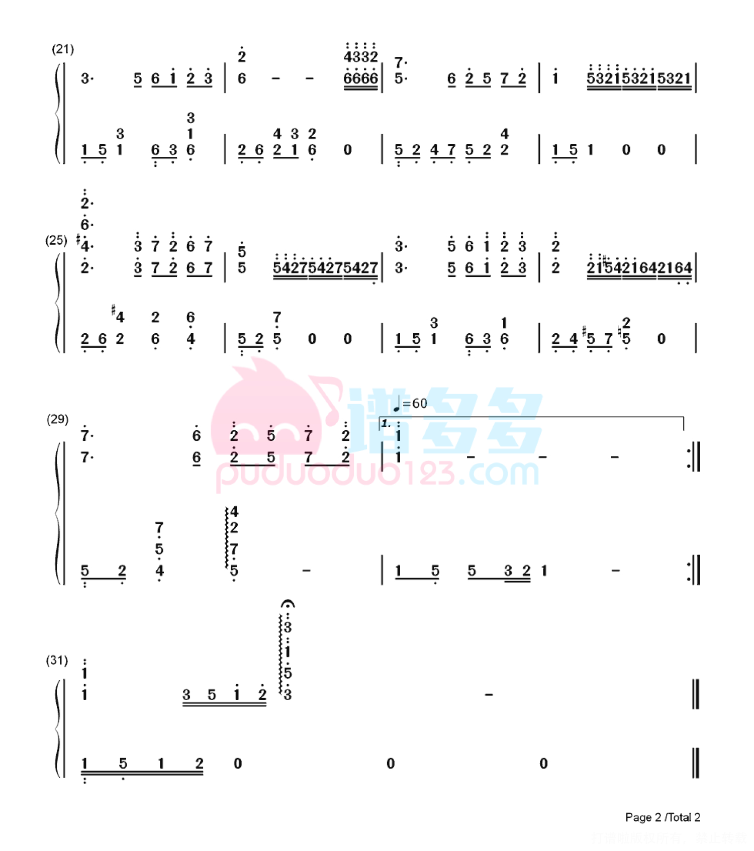 凡是琴谱网站内的版权保护水印,打印时,都会无水印。