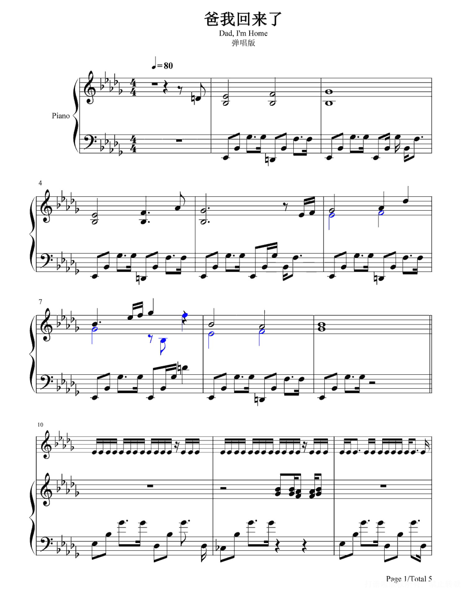 当前位置:琴谱网>钢琴谱>爸我回来了