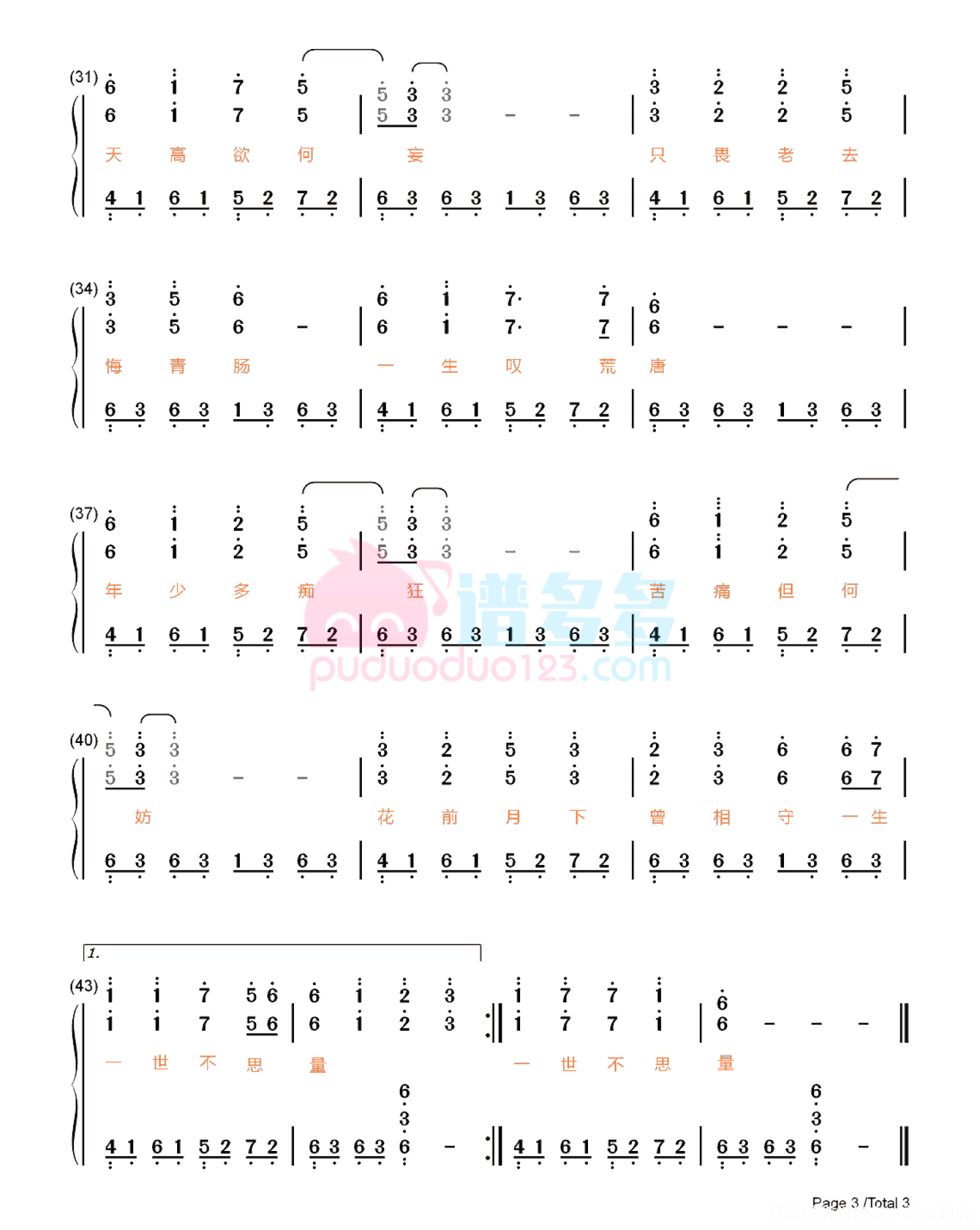(无水印曲谱,一般都会标识为 高清谱,请务必注意!)